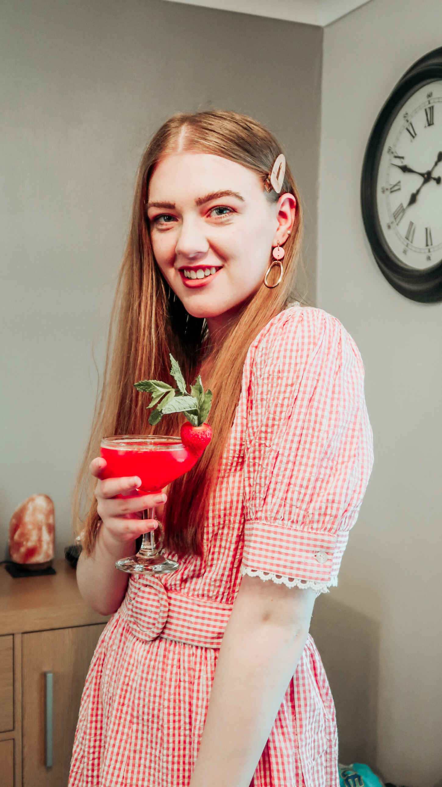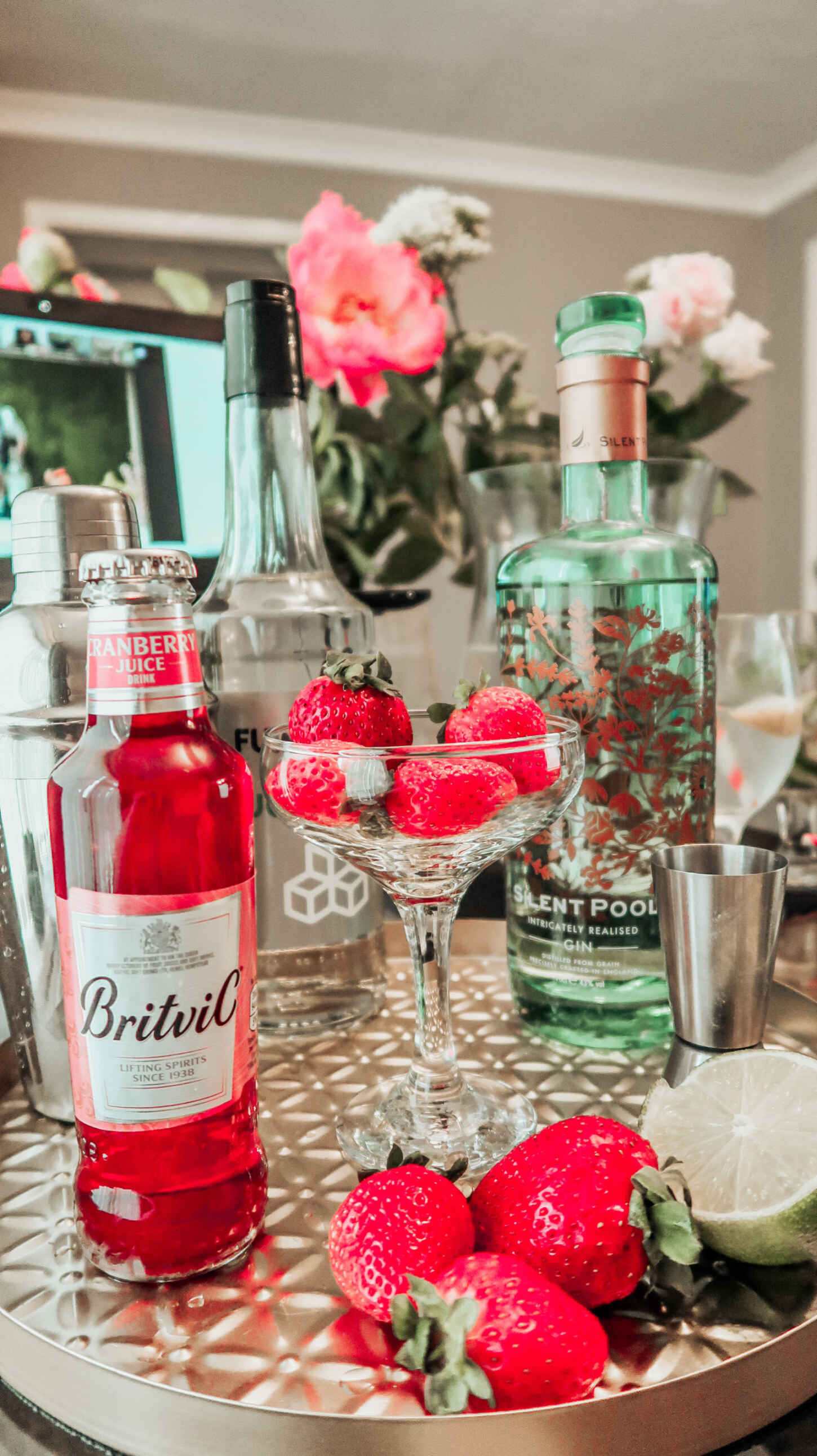 Lastly we made the Strawberry Gimlet in the coupe glass. This was made with 25ml lime juice, syrup and fresh strawberries in the shaker. I muddled these using the end of the bar spoon before adding gin, cranberry juice and ice and giving it a good shake. I strained it into the glass and added a strawberry and mint sprig for garnish and felt like I was in a quirky cocktail bar in Manchester, not just my living room.