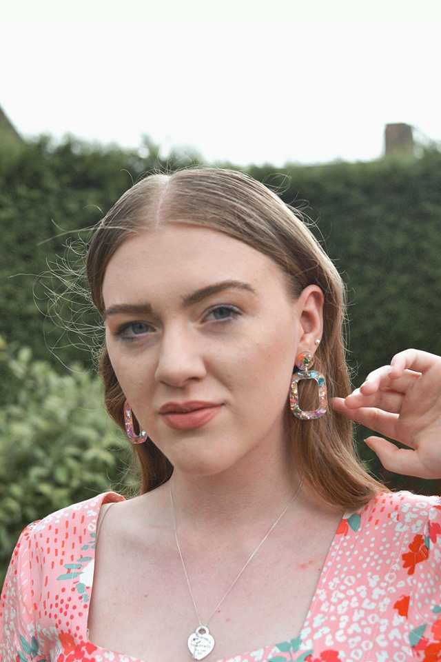 Again, love the name, and Labyrinth is one of my favourite films. These are a great universal design because the confetti has so many colours in it, you could wear them to almost anything. Here, I’ve styled them with my Oliver Bonas Ginny dress, picking up on the pink, green and yellows in the dress. The foil in the glitter is metallic, which complements the gold thread running through the dress.
