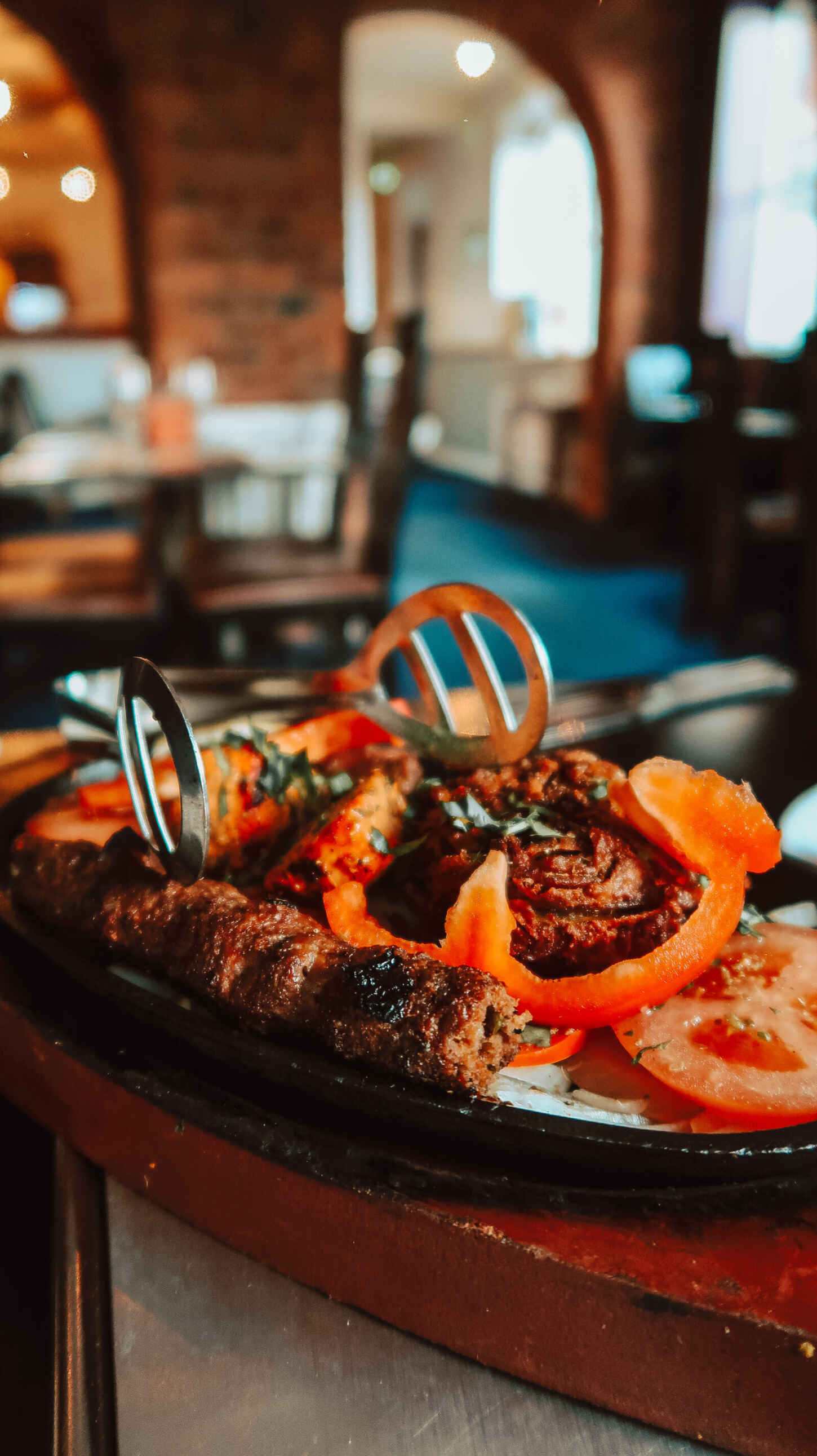A mixed platter arrived on a sizzling skillet, serving chicken tikka, lamb tikka, seekh kebab and a large onion bhaji. The freshness of the salad with the flavours of the meat was amazing. Jake and I were more than impressed before our mains had even arrived.