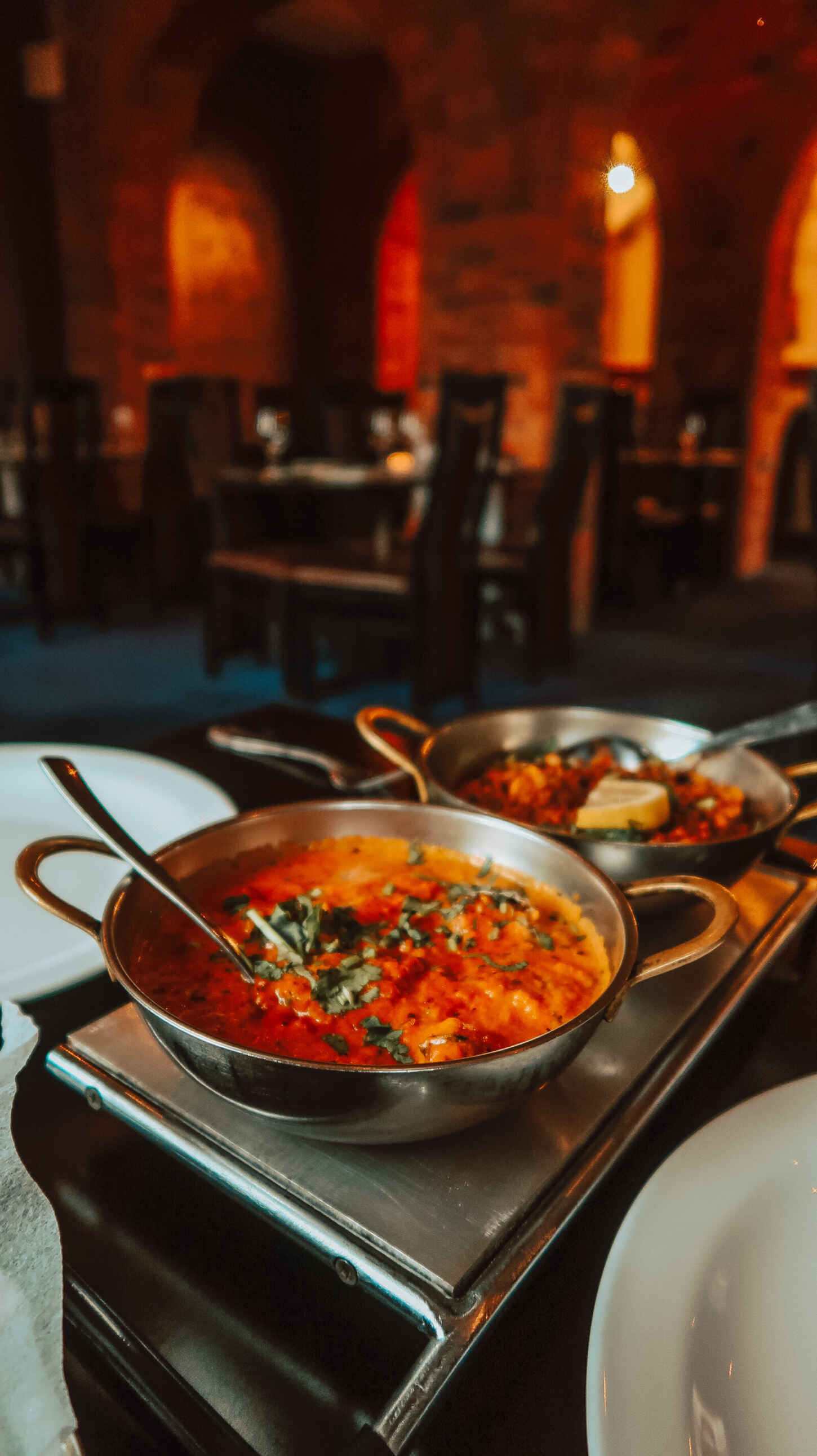 The building is absolutely breathtaking, with exposed brick arches separating tables in the centre of the restaurant. Indian music plays softly through the sound system, with cultural decor throughout.