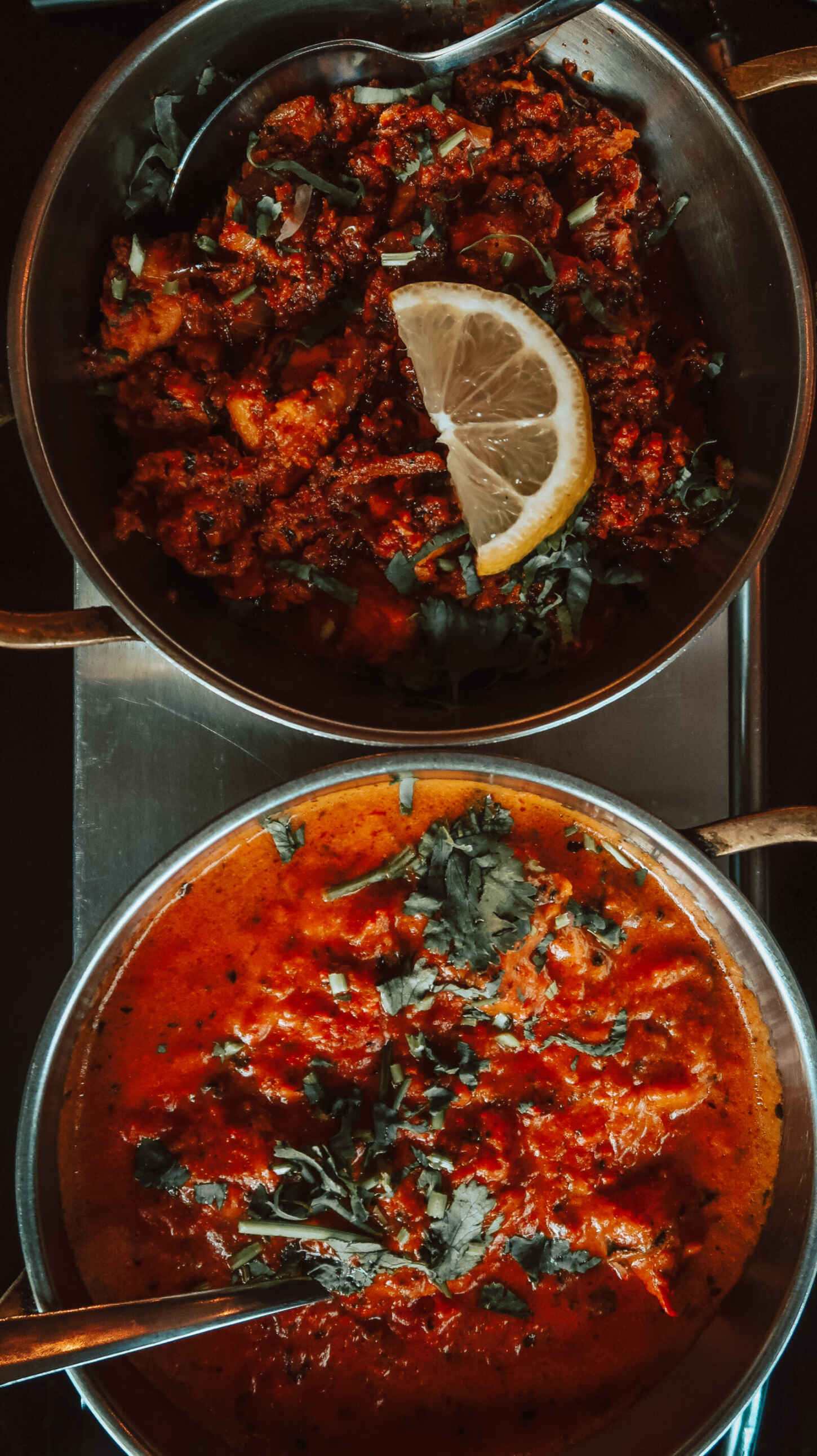 The giant poppadoms broke with a satisfying ‘snap’, and the pickle tray dips were incredible. There was your typical mango chutney and yoghurt and mint dips, both of which were so refreshing, as well as spring onions with tomato and cucumber. But the one that blew me away was the red-toned dip unlike anything I’d ever tasted. It was super zesty with a spicy kick, and really complimented the other condiments on the table. Our waiter explained it was a pickled combination of mango, lime and lemon which had been blended together with some chili flakes.