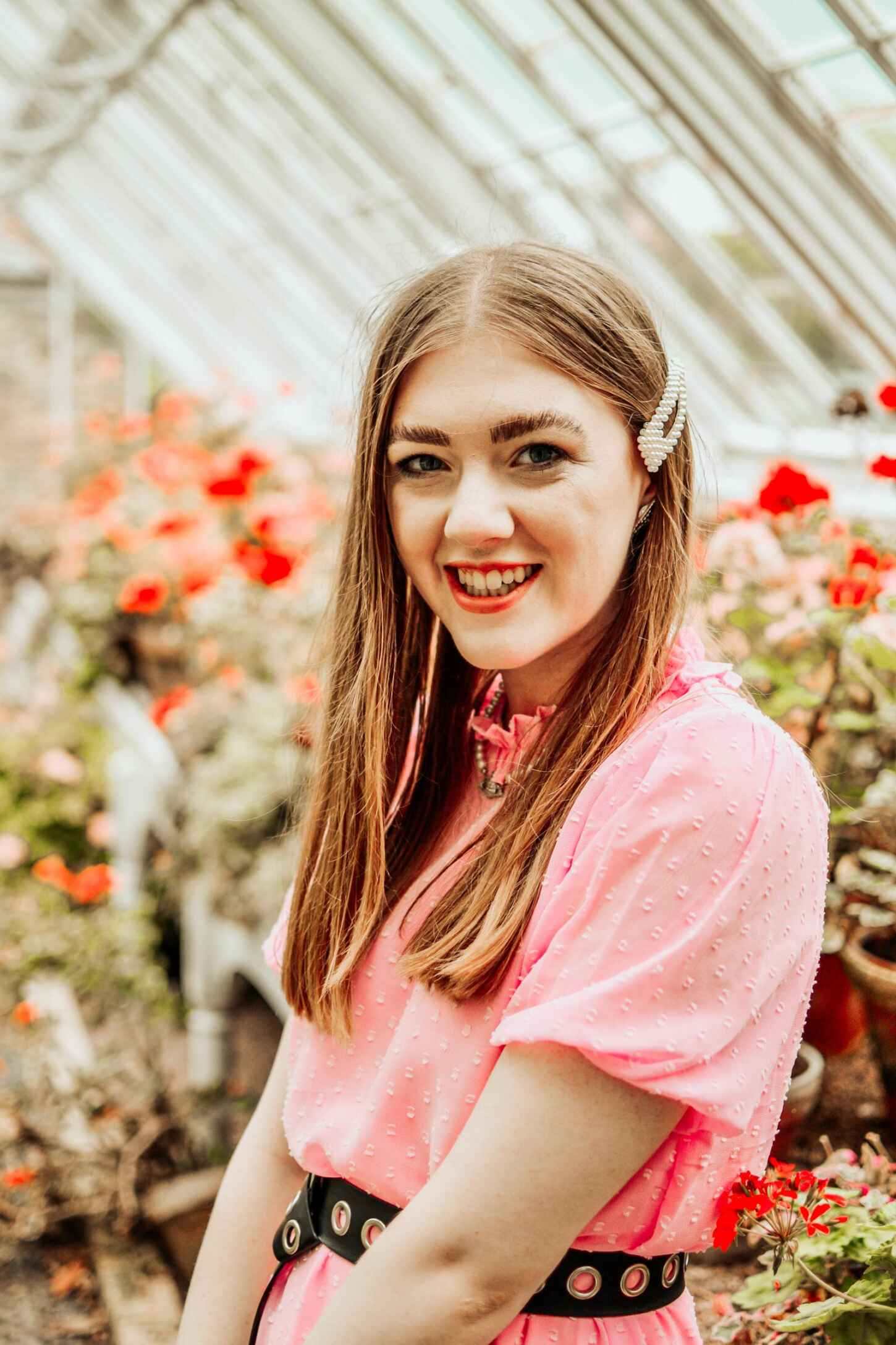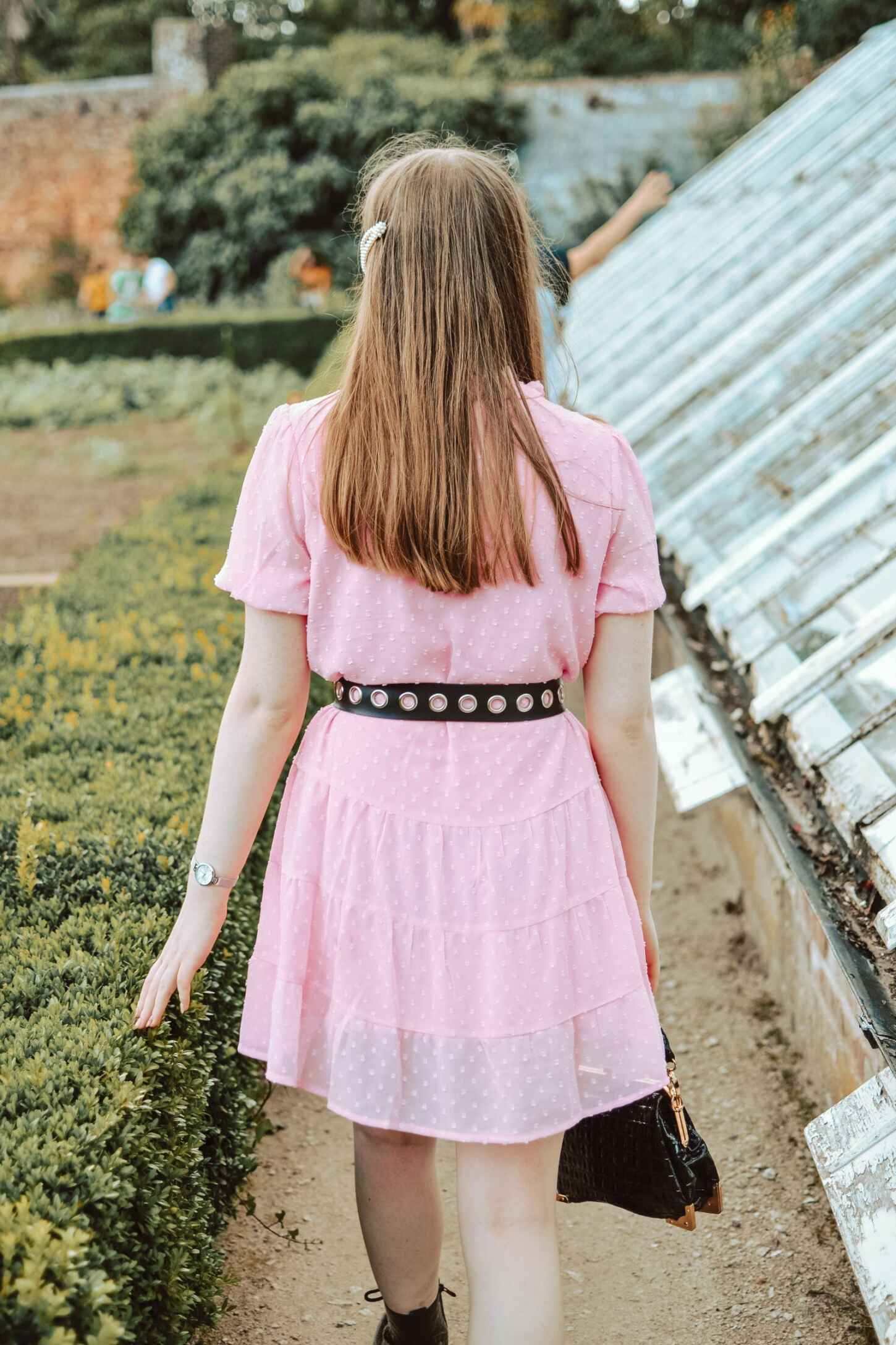 The smock style sheer sugar and spice dress is shorter than I’d usually wear – but I’ve worn nothing but midi dresses for four years. It’s fully lined, with a tiered skirt, which has about two inches of sheer fabric at the bottom to show a little leg. The whole dress is embroidered with polka dots which add texture – as does the vintage-style ruffle neck. Puffed sleeves and elastic at the cuff make it really comfortable to wear, as I can’t stand a dress that restricts your arms.