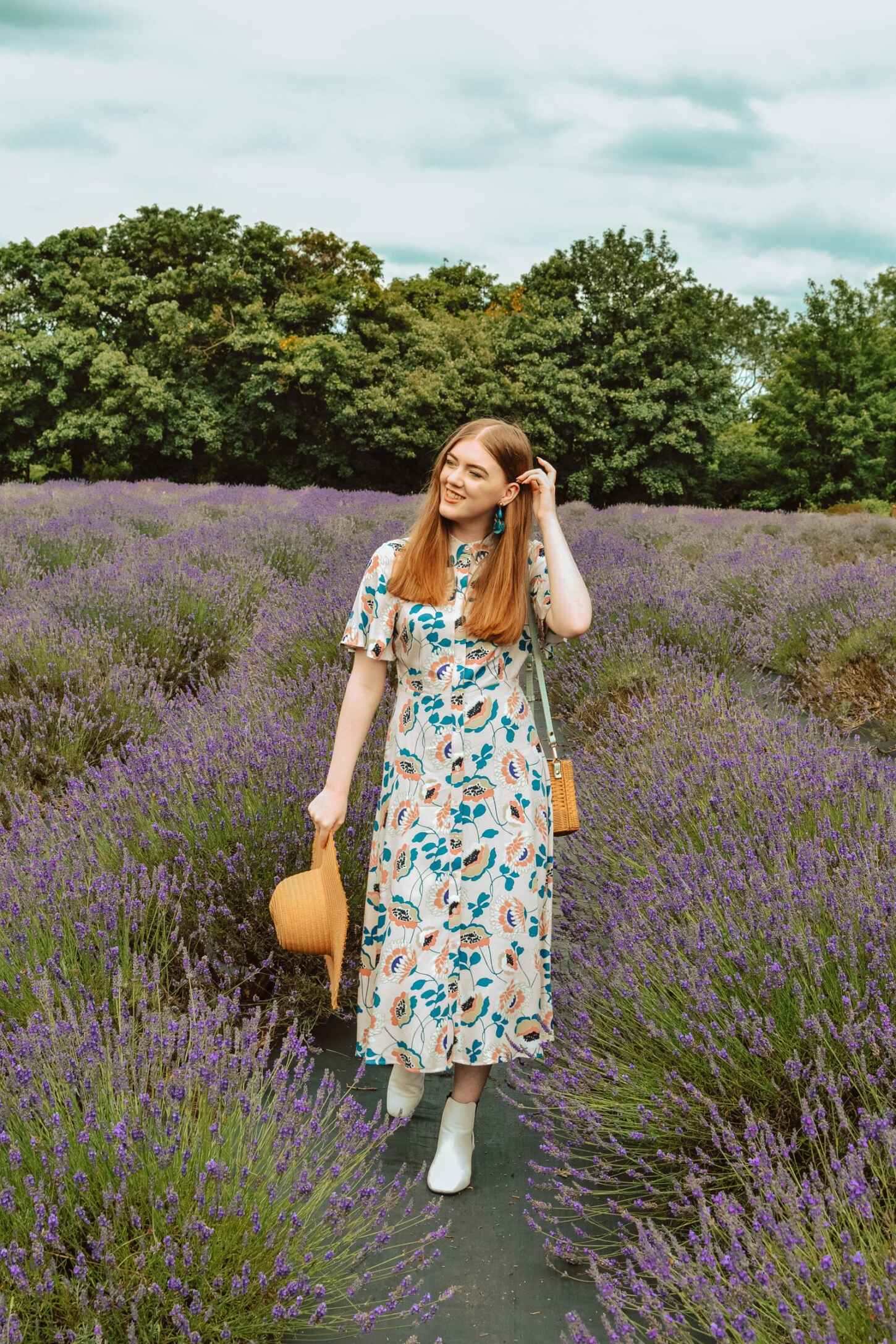 The floral pattern features muted shades of pink and teal, with black, cream and a purple hue. The pink and teal combination is stunning, and makes it fun to accessorise to. The Marks and Spencer dress skims the waist, falling into a swishy skirt. It buttons all the way up and has a little collar, offering a smart/casual look that can be dressed up, dressed down, or dressed for work. The angel sleeves are similar to those on my Oliver Bonas ginny dress, which are both comfortable and feminine, providing a gorgeous silhouette.