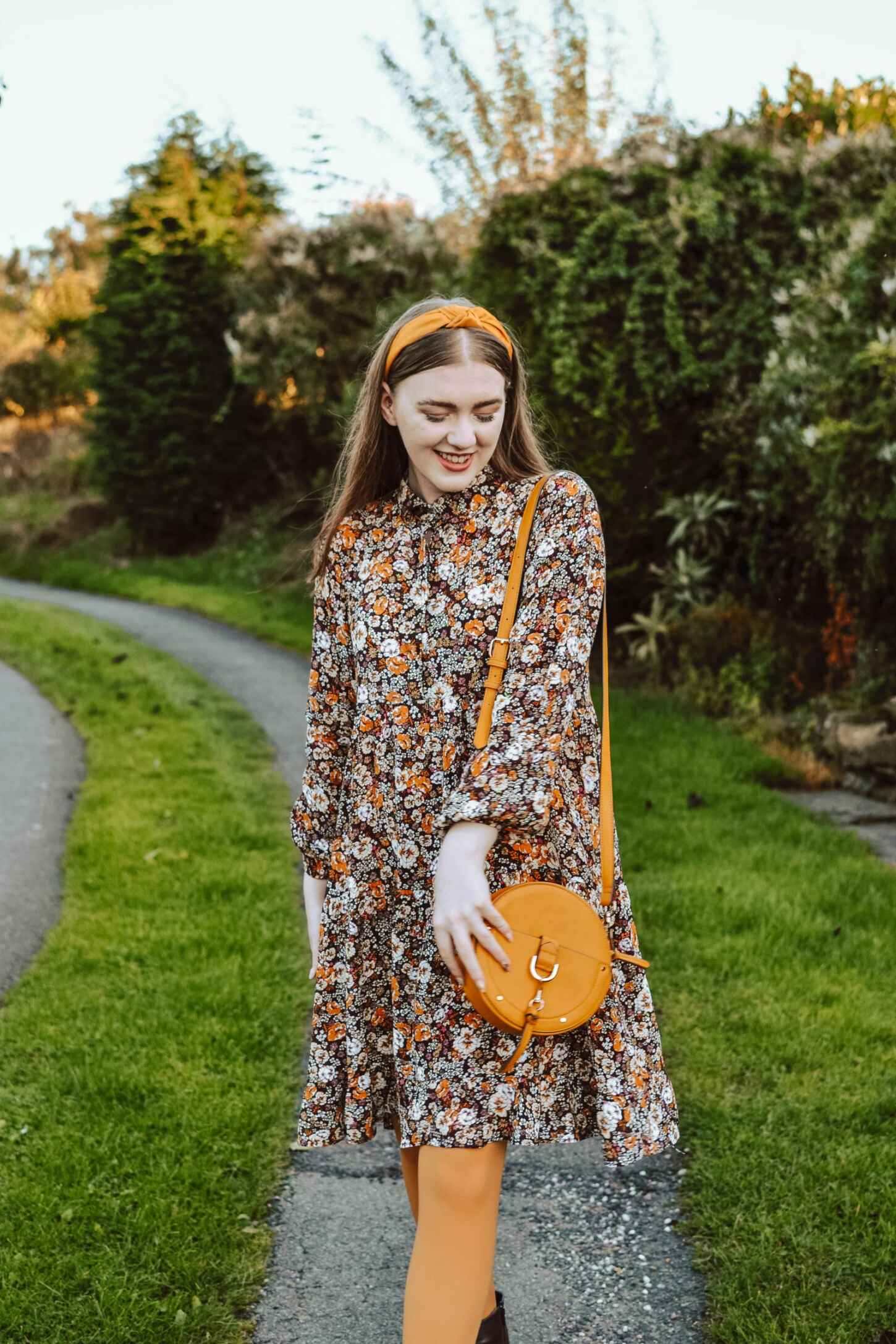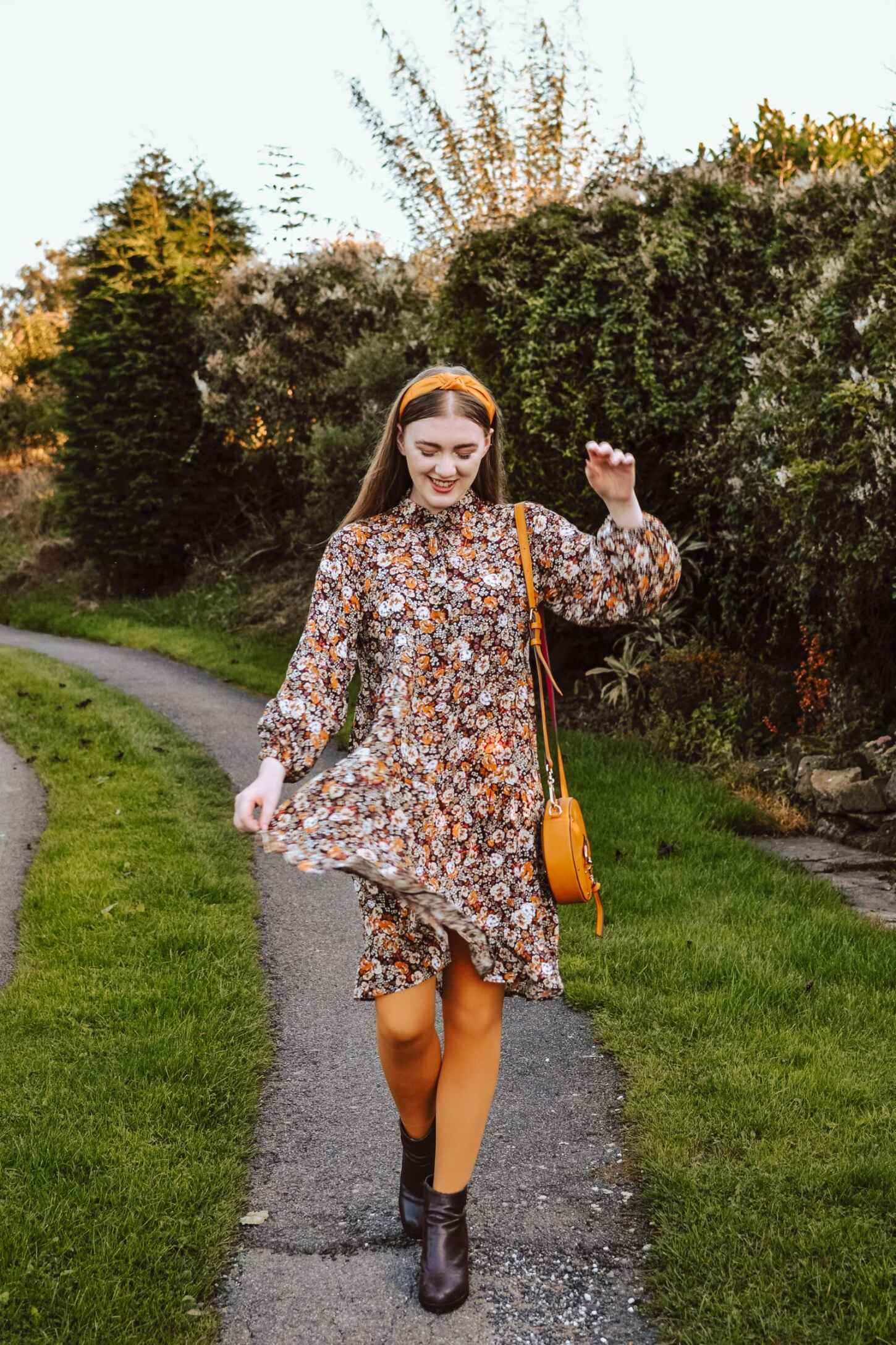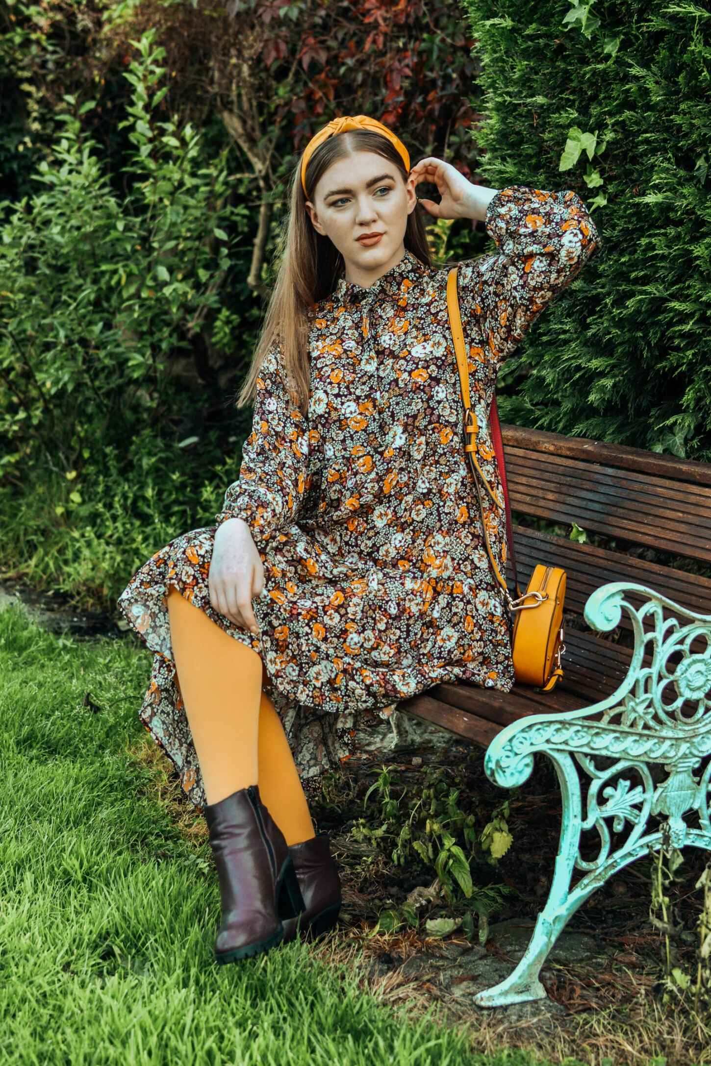 I styled the autumnal smock dress with my Better Tights mustard 80 denier tights. They offer a 70s vibe and are super soft and comfortable to wear. The brand launched earlier in 2020 and have a whole array of colours, and I’ve been eyeing up some more shades. The tights are designed in such a way with a 360-degree stretch that they feel made for you, with a flat seam and no sagging. The last thing you want to be doing is pulling your tights up every two minutes.
