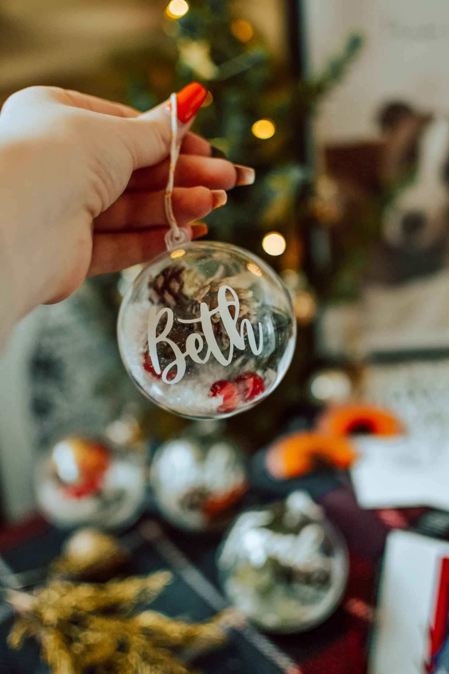 We have ‘Beth’, ‘Phoebe’, ‘Frank’ and ‘Joy’ baubles, which we’ve got placed in a glass bowl on the fireplace to add a touch of Christmas to the room until we get the tree up. These are perfect for people who have recently moved into their first home and will be having their first tree, or for parents of a newborn who will be experiencing their first Christmas. Equally – they’re great for dog-mums like me who love anything personalised for their pets.
