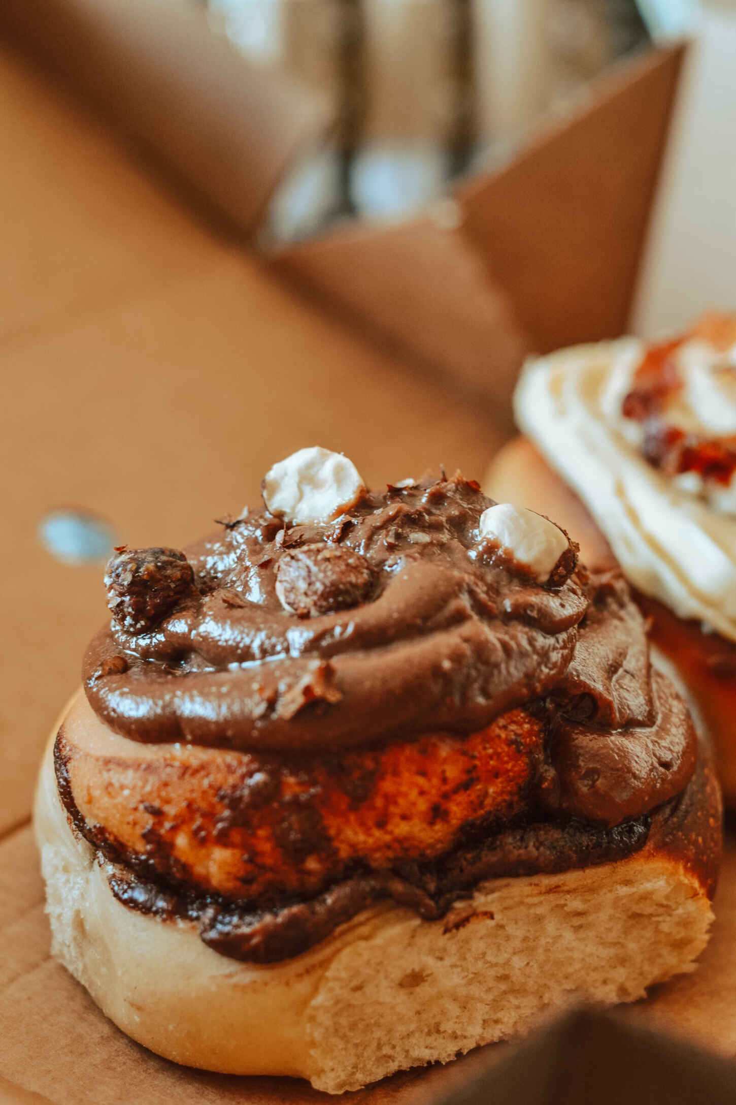 The bacon and maple syrup one was unreal – similar to the classic cinnamon bun, but soaked in syrup and smothered maple syrup cream cheese frosting, topped with crispy pieces of candied streaky bacon. If you love food that’s both sweet and savoury, then you’ll be sold on this one. Chocolate lovers will adore the Nutella sticky bun, filled with Nutella spread with a chocolate cream cheese frosting and hazelnuts. It’s super indulgent and rich – but calories don’t count when they’re supporting a small business…