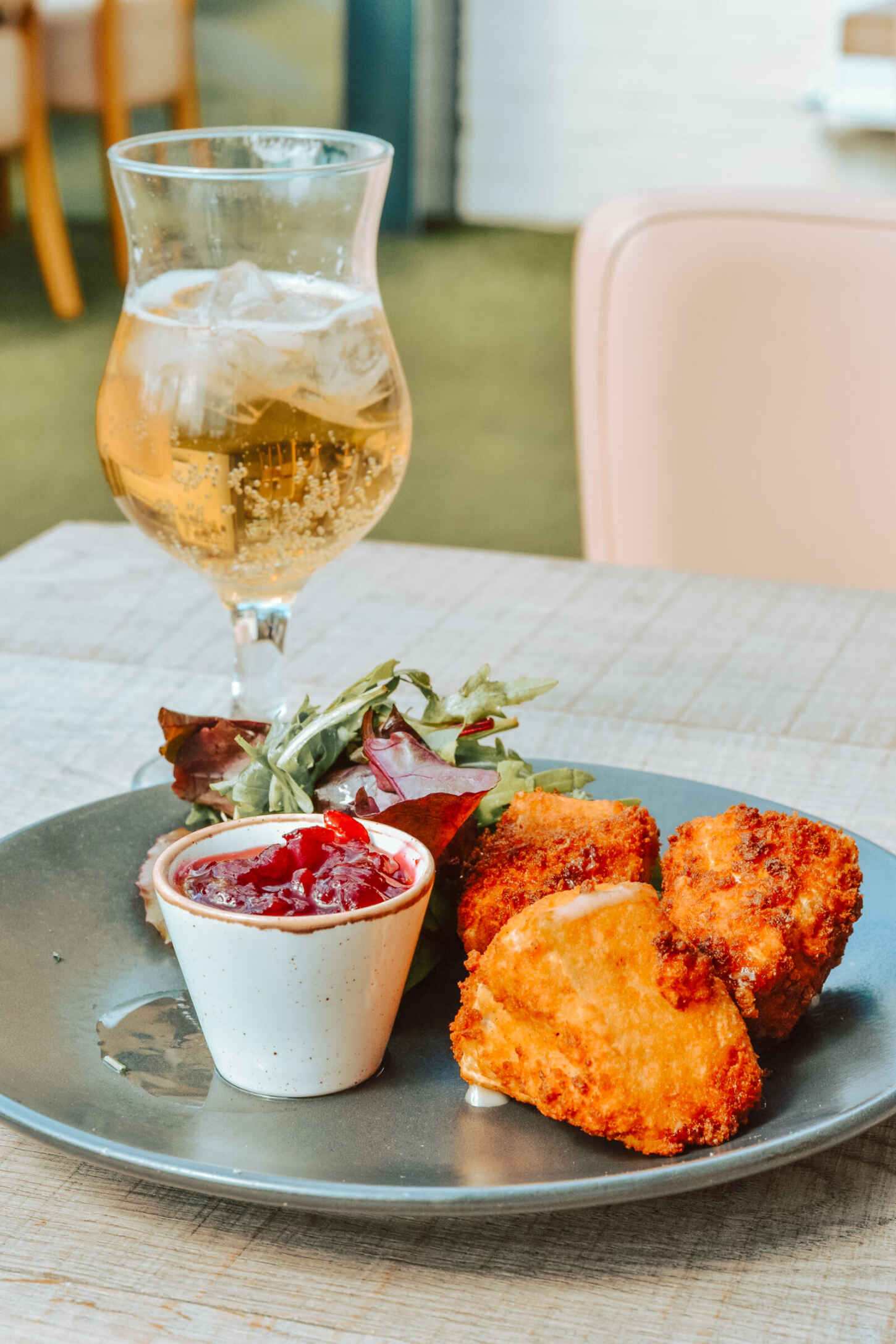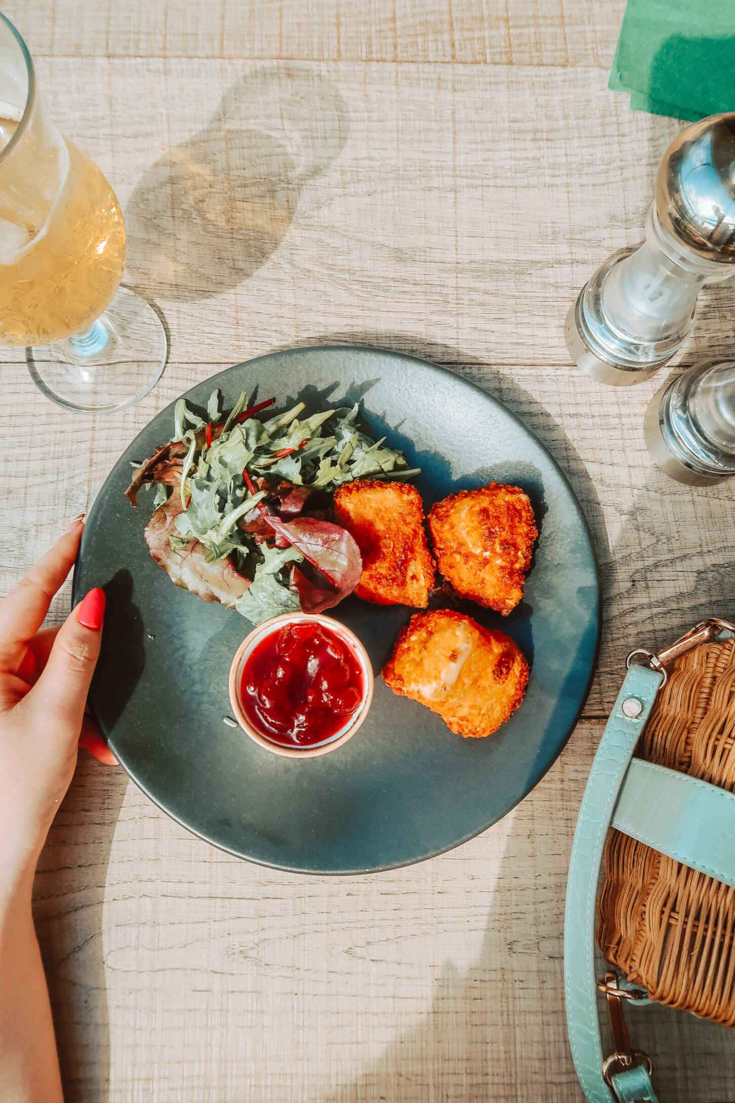 The food menu is packed full of flavours from France, Spain, Italy, Greece and Morocco. There’s plenty of choice for vegetarians and vegans, and seems a good selection of gluten free food, too. I ordered the breaded camembert starter, which featured three large camembert wedges served with mixed leaves and a cranberry compote. The wedges were huge and as you cut into them, camembert just oozed out. The dish costs £6.65, and if you were having a girls day out, you could quite happily order a bunch of starters to pick at. Mum, dad and my brother all had the Grilled Goat’s Cheese on toasted brioche with aged balsamic, caramelised red onions and beetroot chutney, which looked delicious, and Mel opted for the Calamari Fritti, which was a number of paprika floured squid rings, aioli and fresh lemon.
