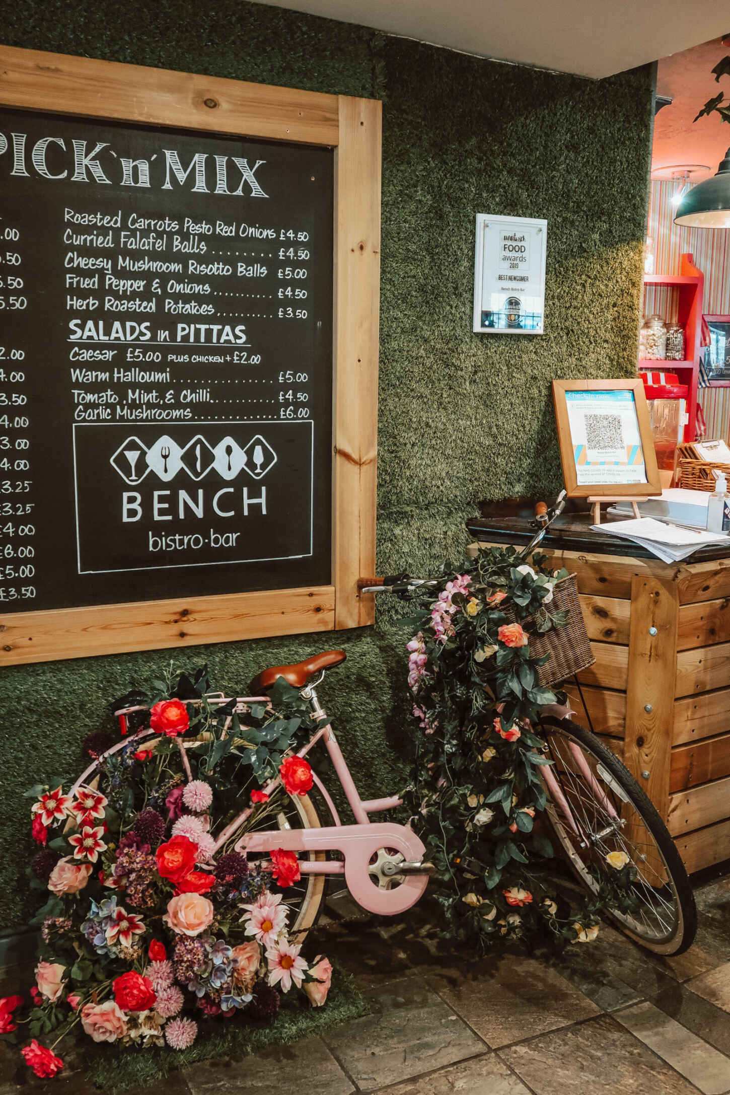Instagrammable floral arches and garden swings, with pick and mix dishes served on adorable miniature picnic benches – Bench, Nantwich, is the most picture-perfect bistro bar for a girly day out.