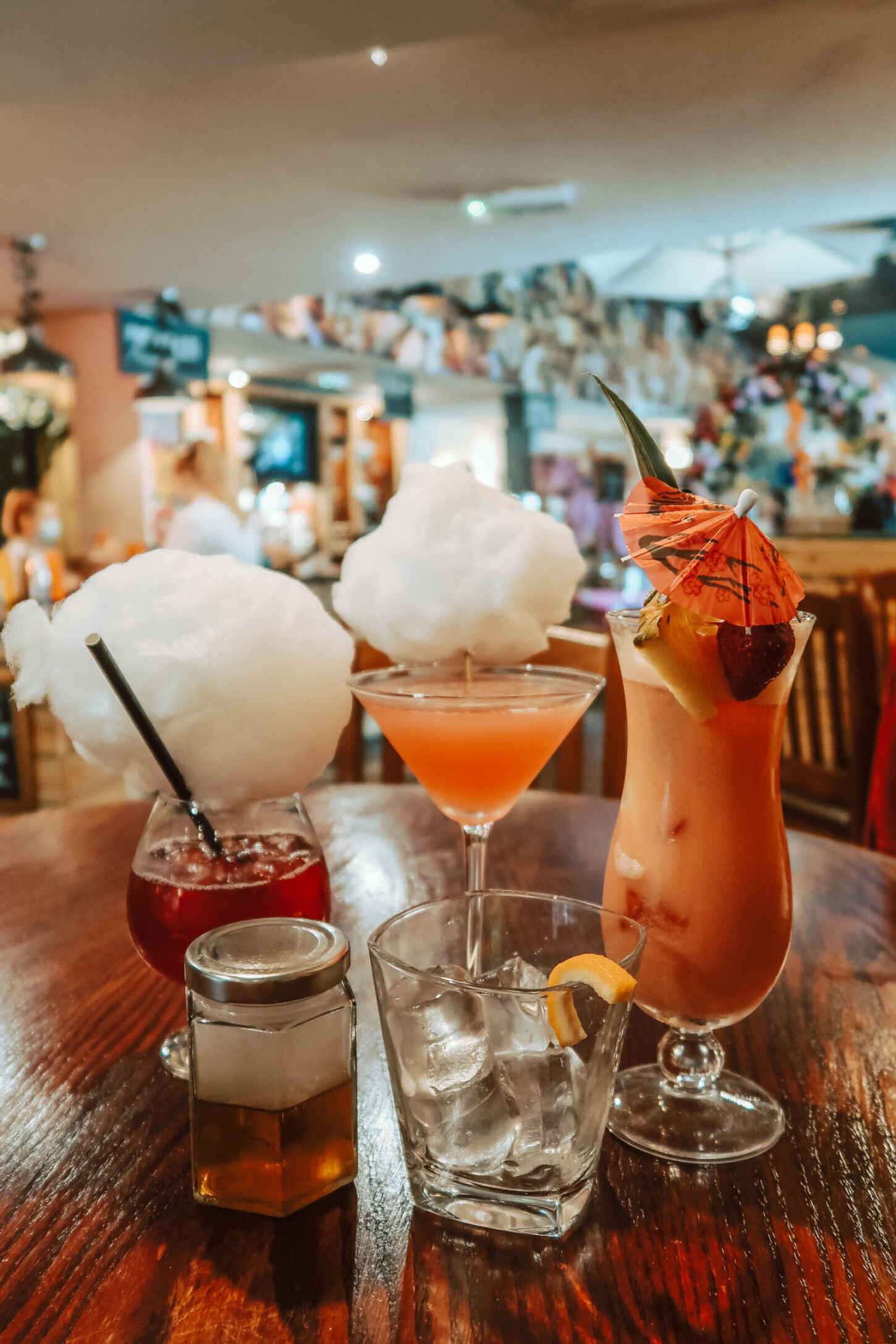 - The Floss – Cherry gin, pomegranate syrup, cherry jam and cranberry juice garnished with candy floss