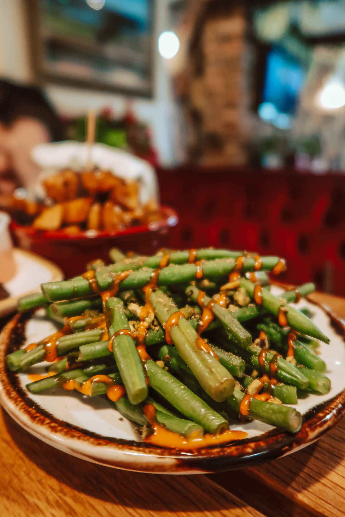 - Green Beans with harissa and pistachio – £4.00 V