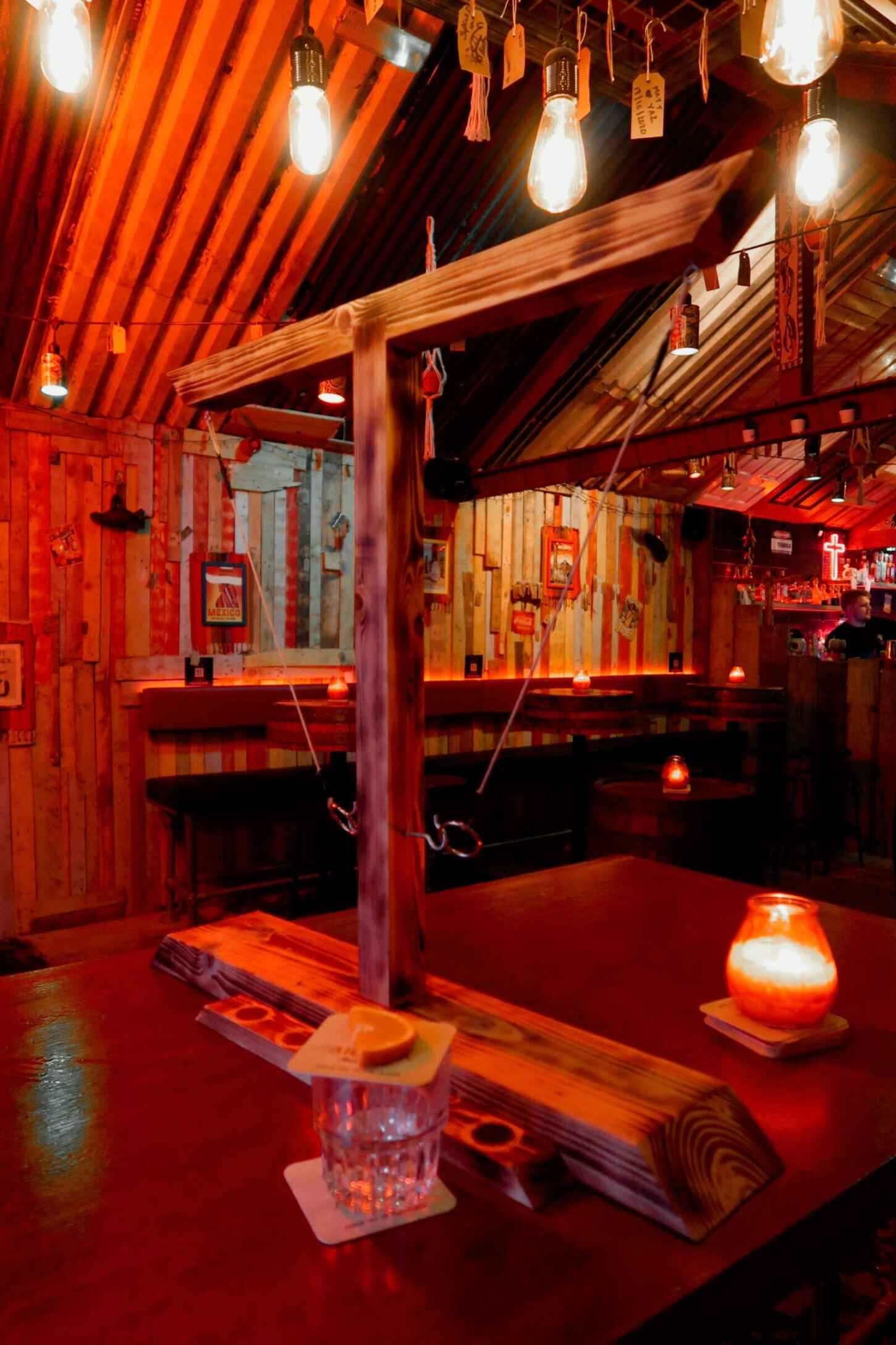 Don’t forget to order a round of slammers, which come in flavours rhubarb, grapefruit, cherry and orange. It’s not your average tequila shot, as it features a dash of soda that fizzes when you slam it on the table before knocking it back. These are a great drink to use for the tequila toss game, which sees two players battle to get a ring on a rope hooked onto a hook, moving the drink closer to the losing person until they’re out and have to down it.