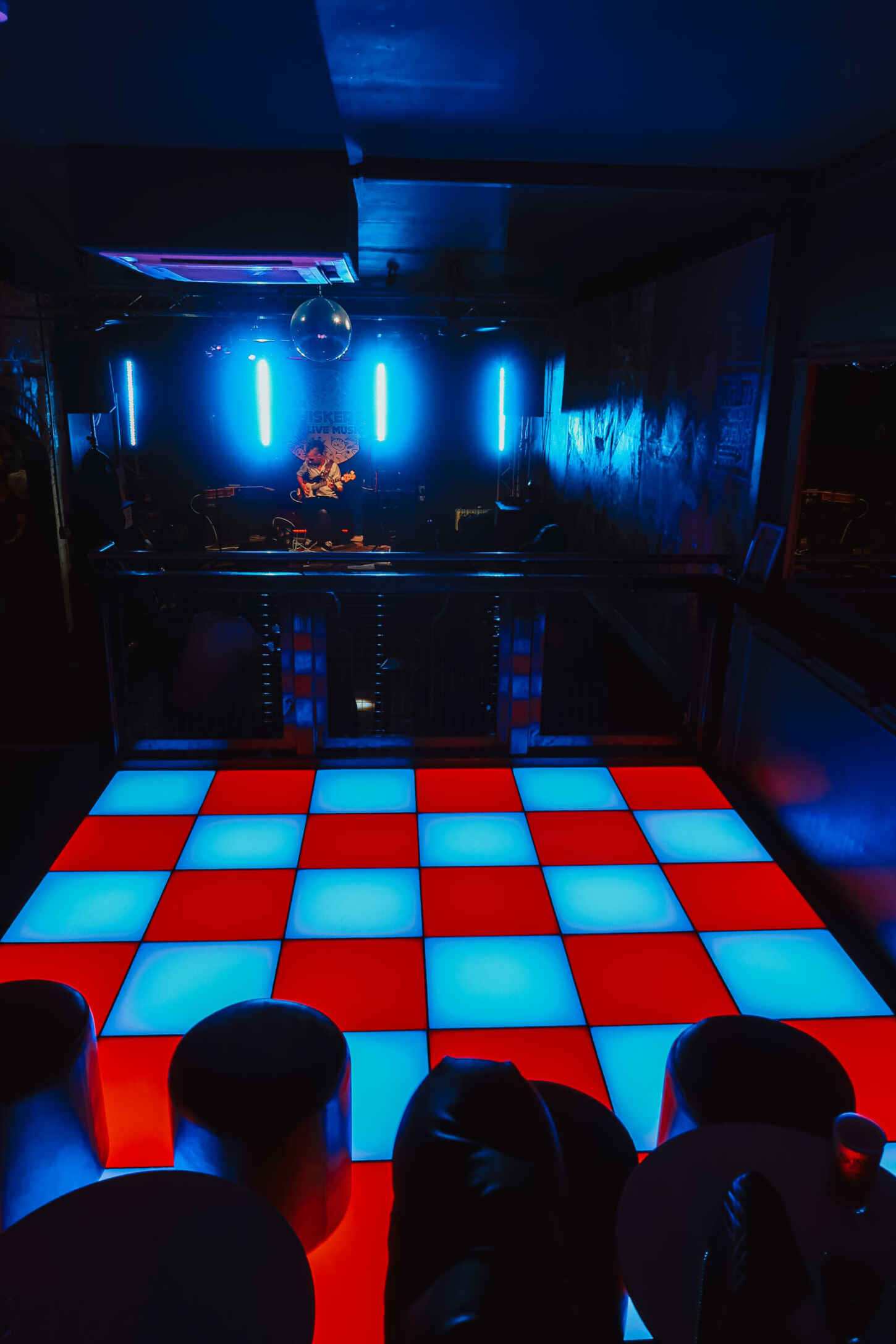 Inside, there’s a bar, stage area, dancefloor, LED dancefloor, and a handful of seating. There’s a subtle cat theme running through, from the name to the moggy murals and cat tables. This is inspired by owners JG and Nicole’s cats, Orla and Nibbles, so you might be surprised to discover the venue is actually really dog friendly!