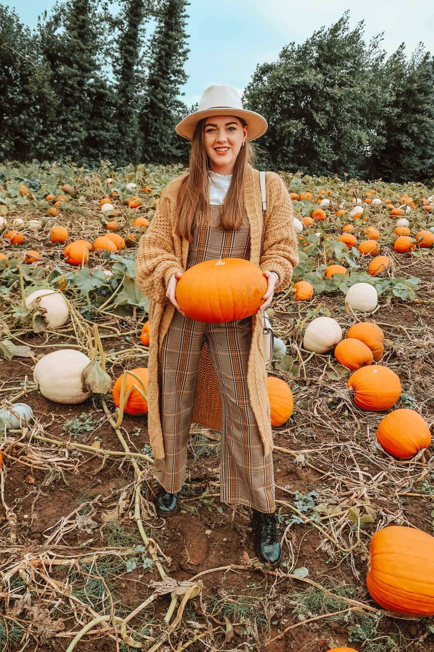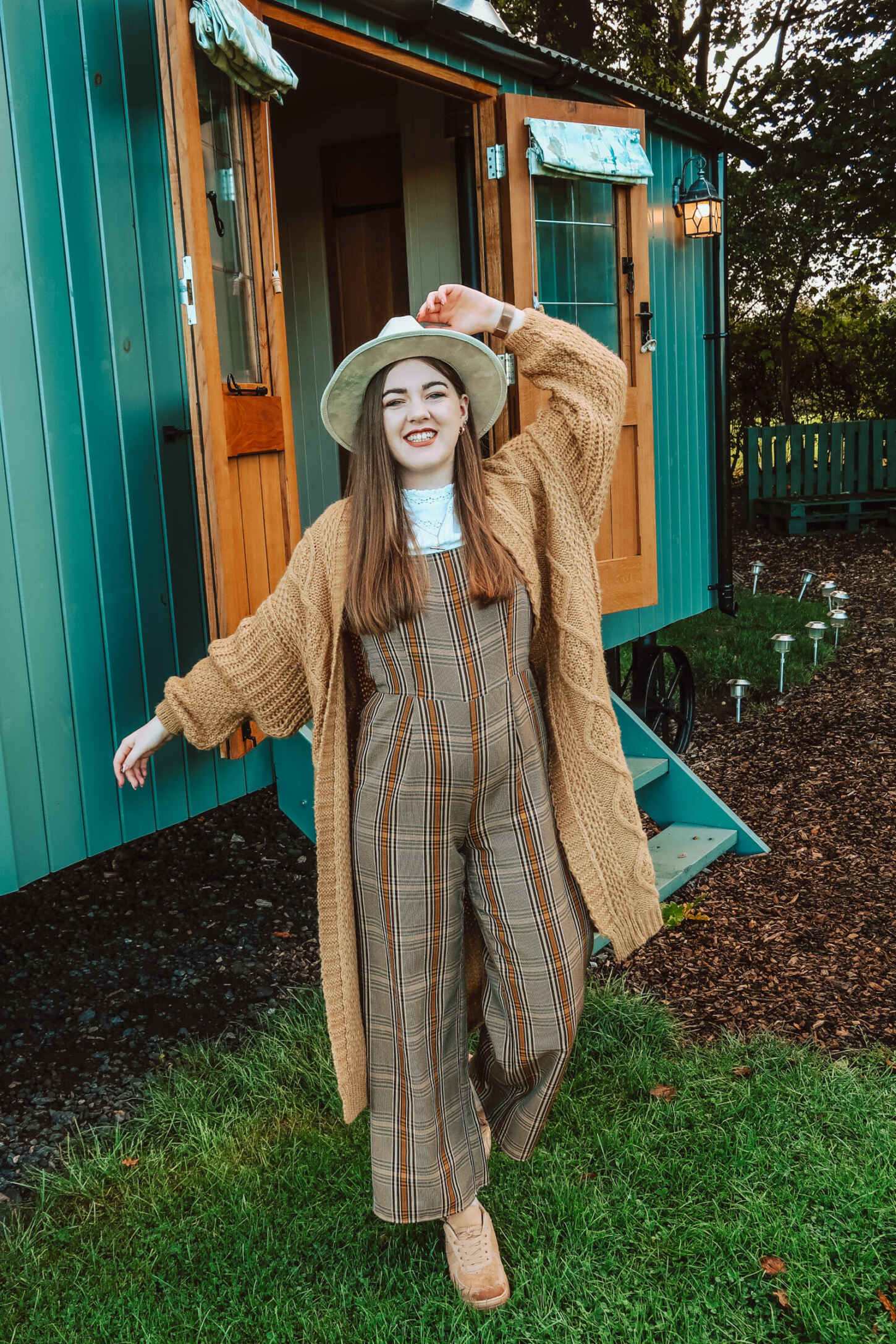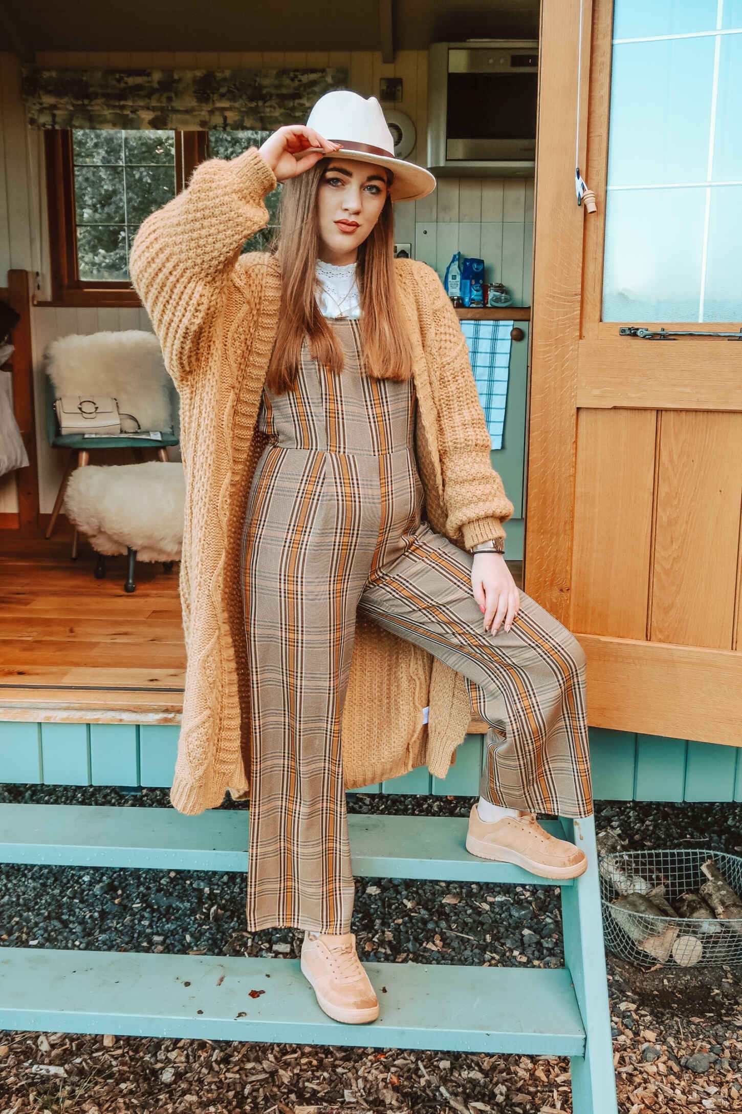 Cara recommends pairing it with slouchy mom jeans or layering in style over your favourite floaty maxi dress. Perfect for autumn, I styled it with a white blouse, beige and mustard checked jumpsuit and a cream fedora. I love this look with both trainers and boots – so you can rock the Stevie no matter what the weather looks like.