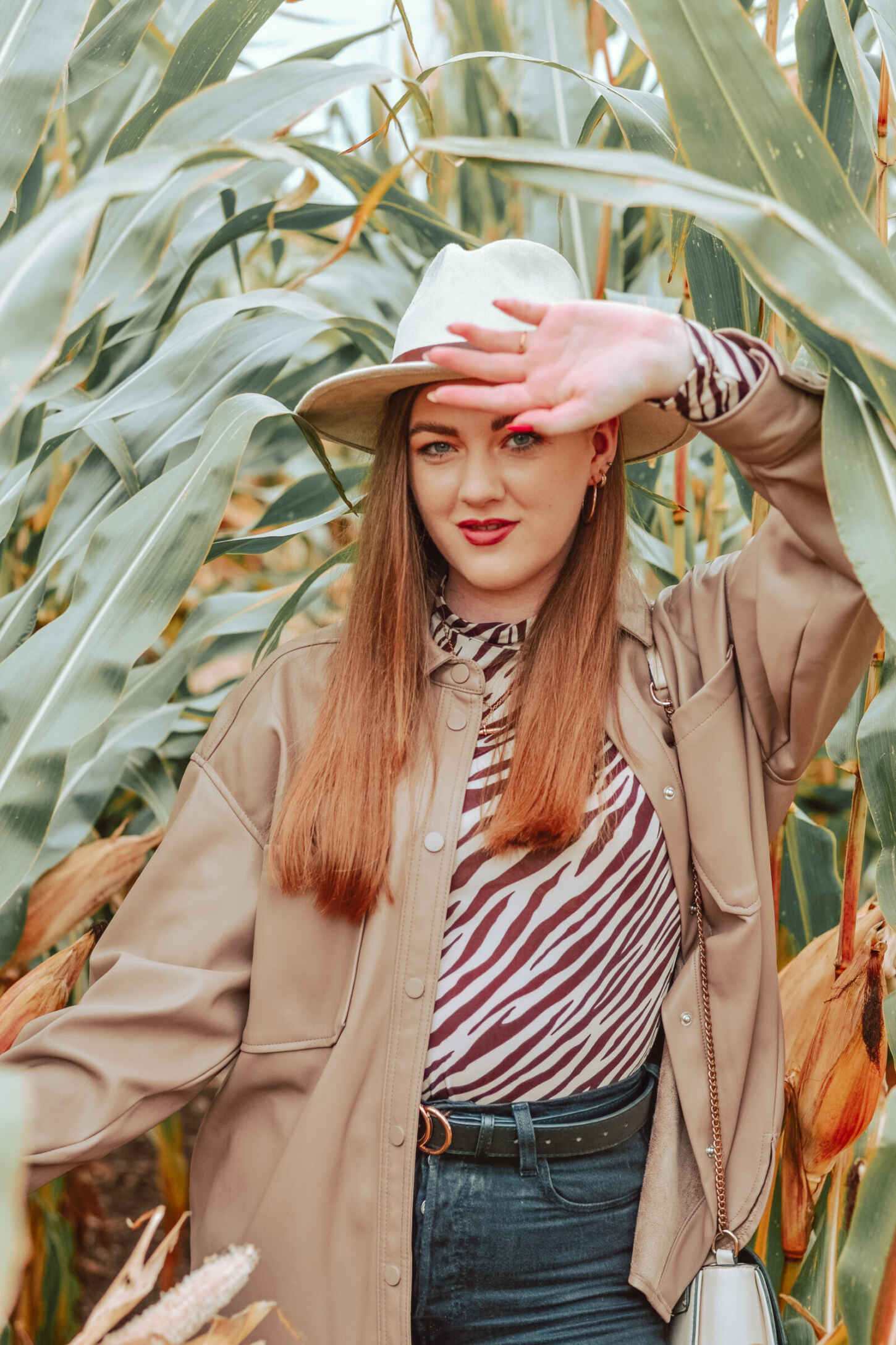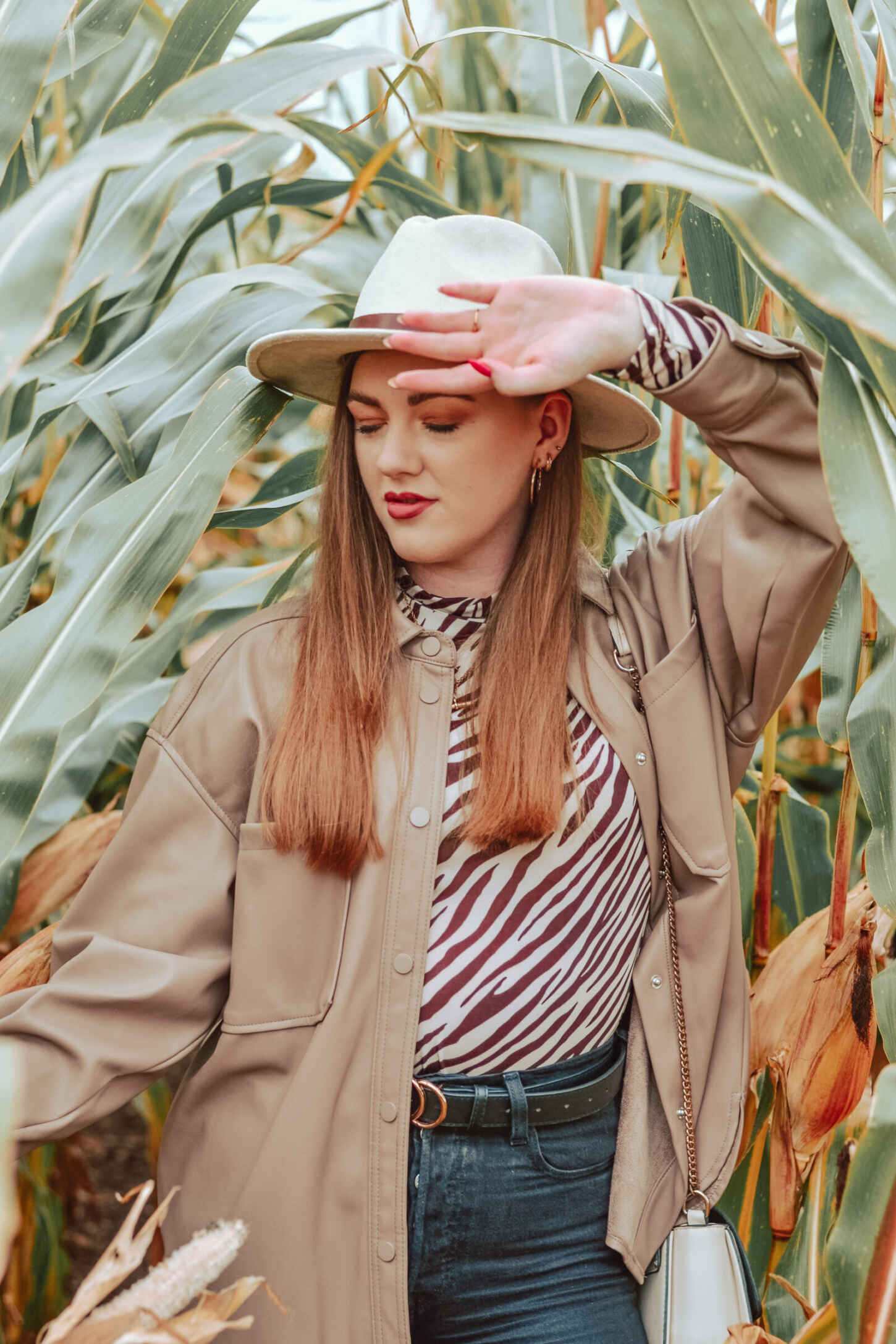 The first time I wore this out, I styled the shacket with a neutral-coloured zebra print high neck top from Lula Leek, paired with my Levi ribcage straight leg jeans, black Lula Leek boots and a Kylie and Kendall cream fedora I picked up in TK Maxx for £12.99. Primark does currently have a similar wool one in for £10 though. Finally, to accessories, I wore Daisy London rings and gold t-bar necklace, with a Dorothy Perkins bag that goes with absolutely everything I own.
