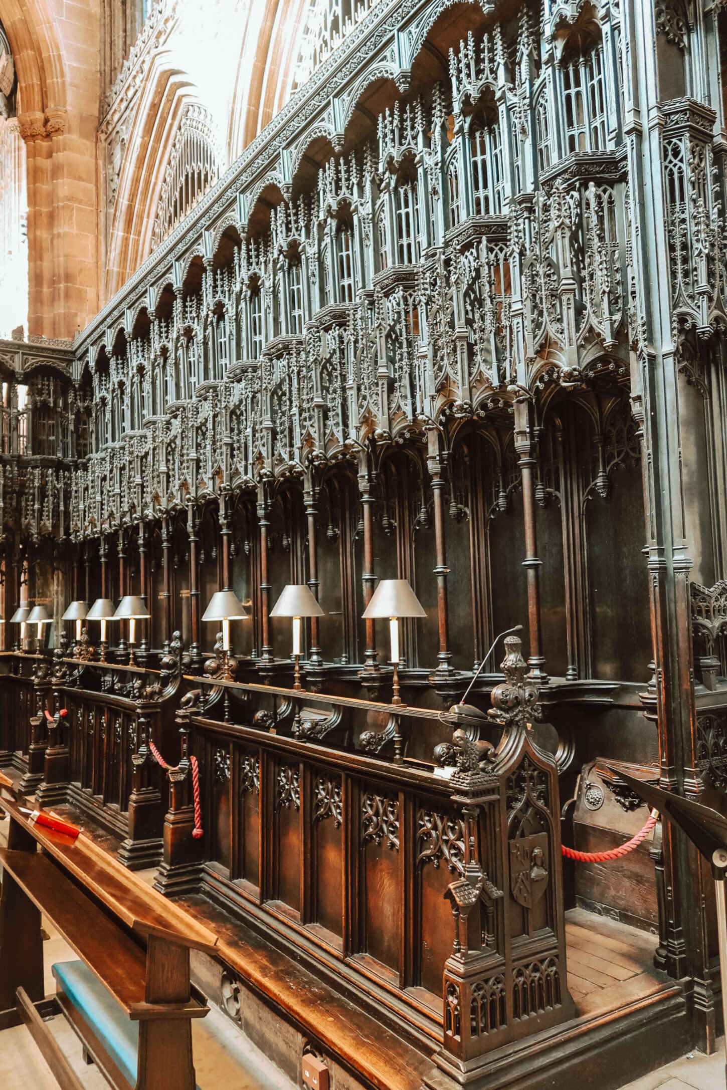 It was mainly built in gothic style, with intricate late medieval wooden furnishings, commissioned by former warden James Stanley. There’s so much to admire, ncluding the Minstrel Angel sculptures commissioned by Margaret Beaufort, a collection of 30 misericords from the 16th century, stunning stained glass, imposing arches, and ornate details everywhere you look.