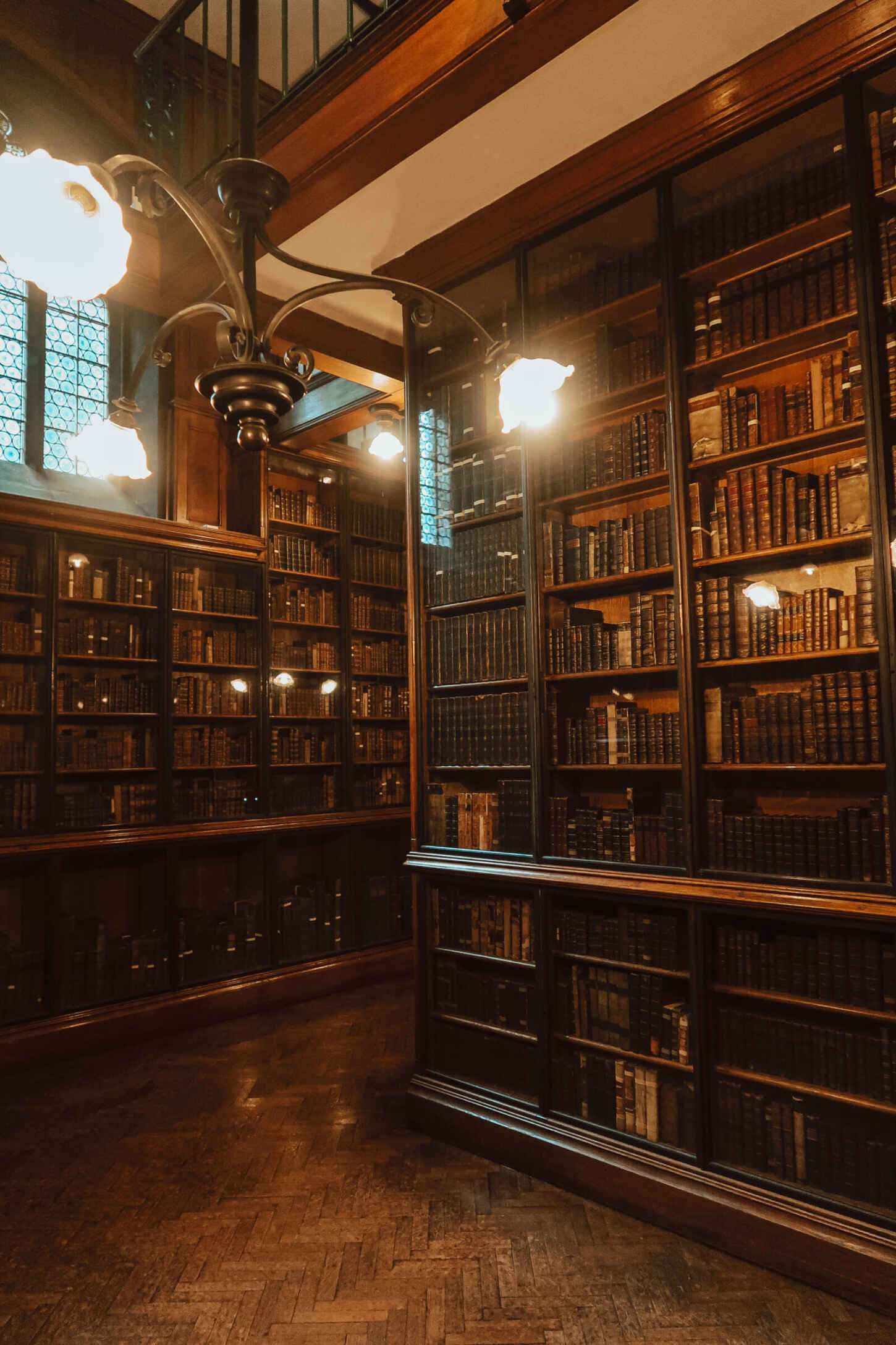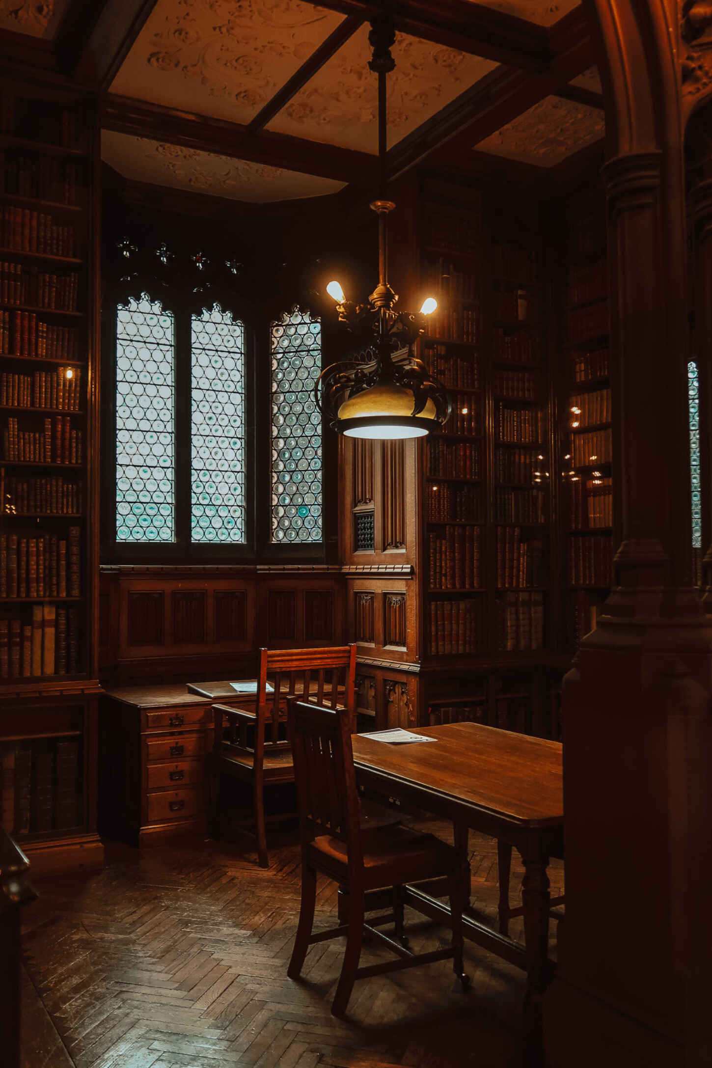 The building became part of The University of Manchester in 1972 and includes a Historic Reading Room with alcoves for private study and amazing stained glass windows at each end.