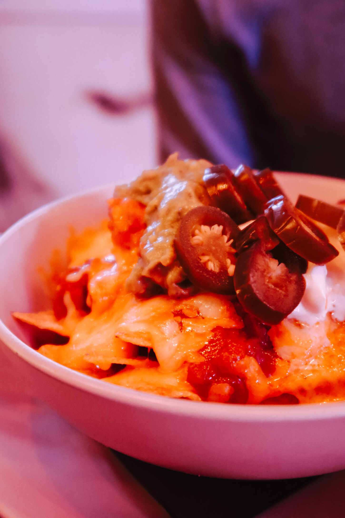 We ordered the loaded nachos with guacamole, salsa, soured cream and jalapenos, as well as the spiced halloumi fries which came with a side of the most delicious chilli jam. The buttermilk fried chicken strips and waffle were less chicken strips and more like a chicken fillet sliced in half, but was just as mouthwatering with sweet, sticky maple syrup.