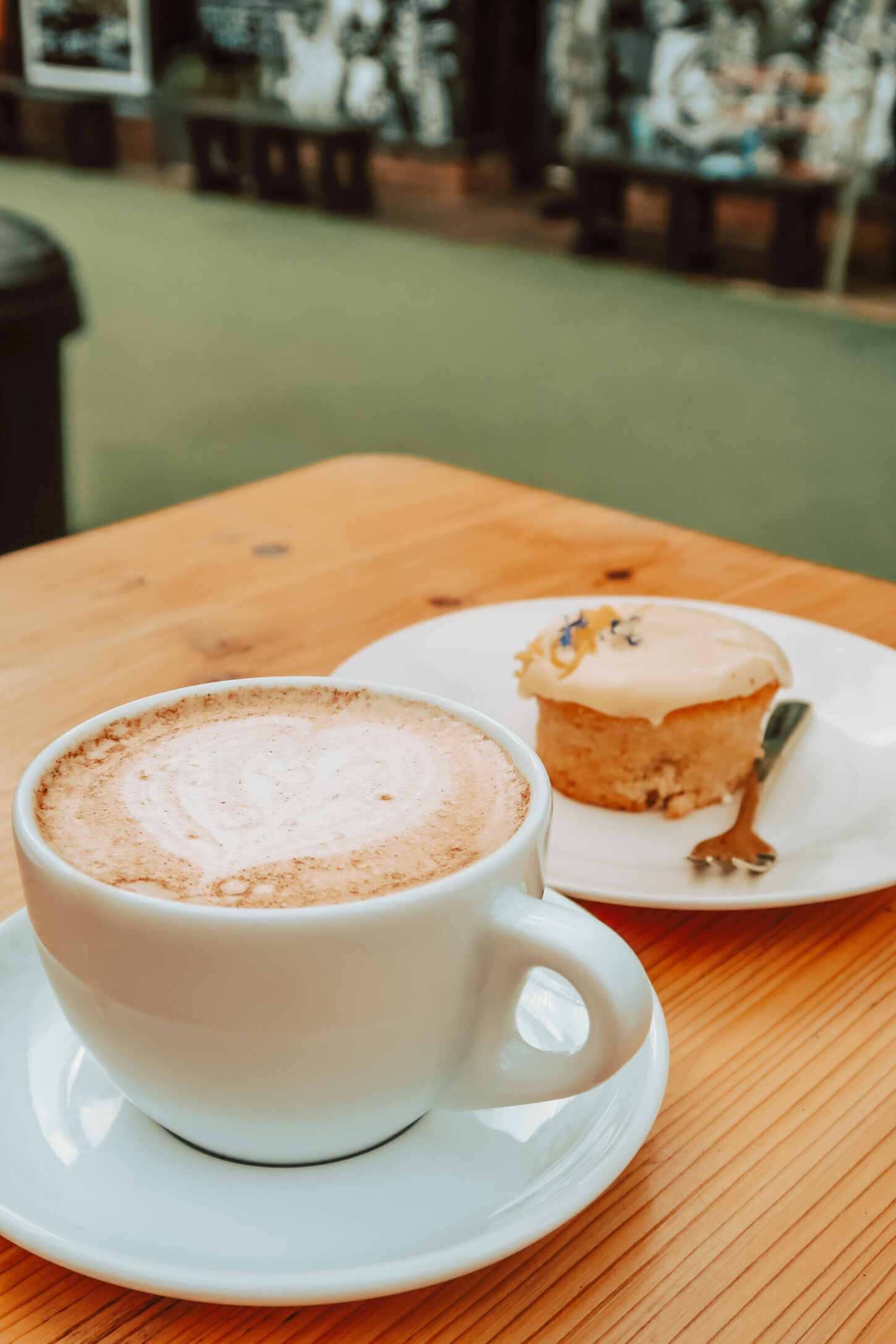 Shoppers can order at the caravan window where there is a selection of cakes on offer, all baked in house. I went for a vegan lemon cake, while we ordered teas, hot chocolate and a chai latte for the table.