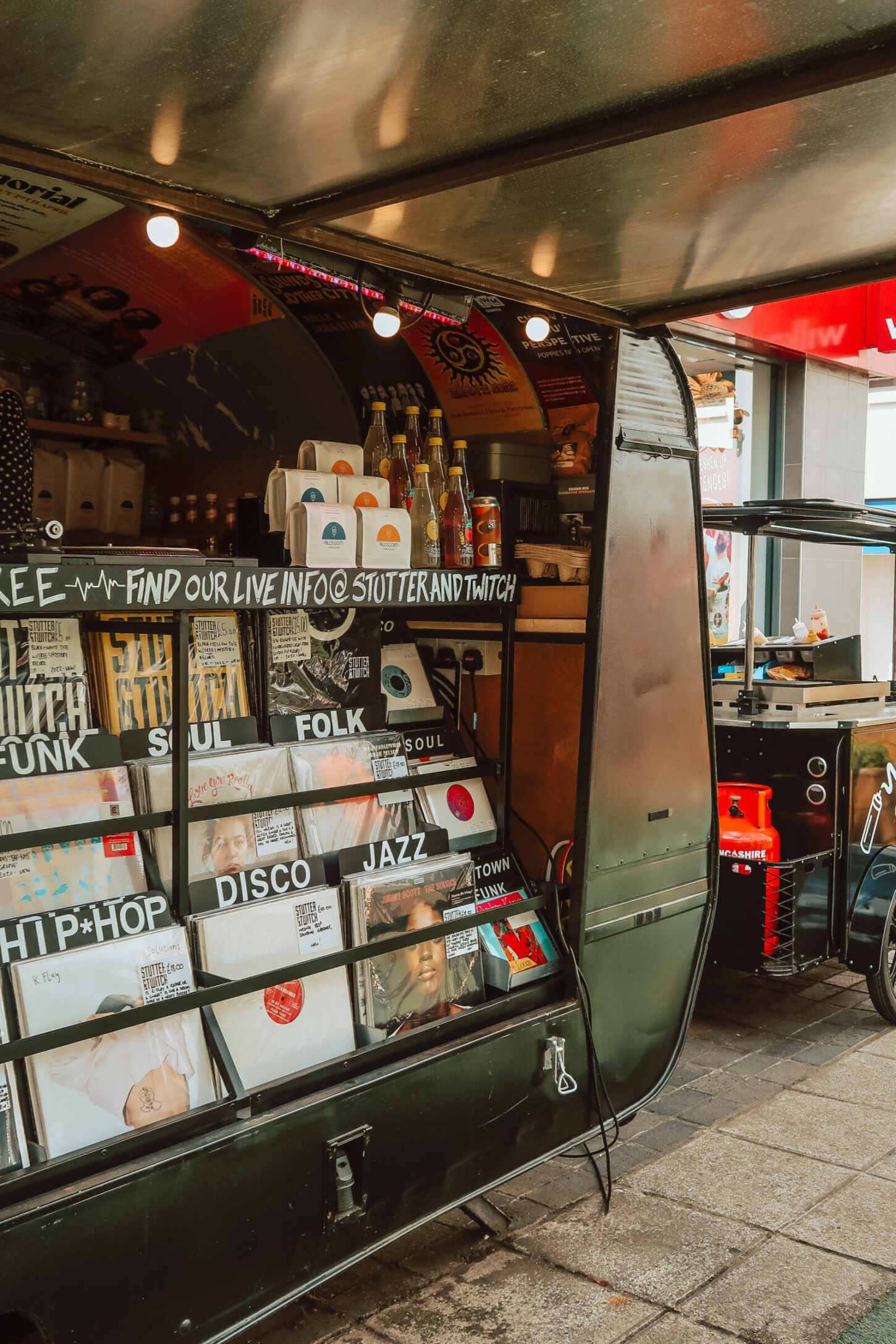 One of Altrincham’s coolest coffee shops is serving up cocktails, lattes, cakes and records from a converted caravan. Stutter and Twitch – based in Stamford Square’s not so secret garden – opened in 2021, and appears to be a bustling hub combining a love of music with food and drink.