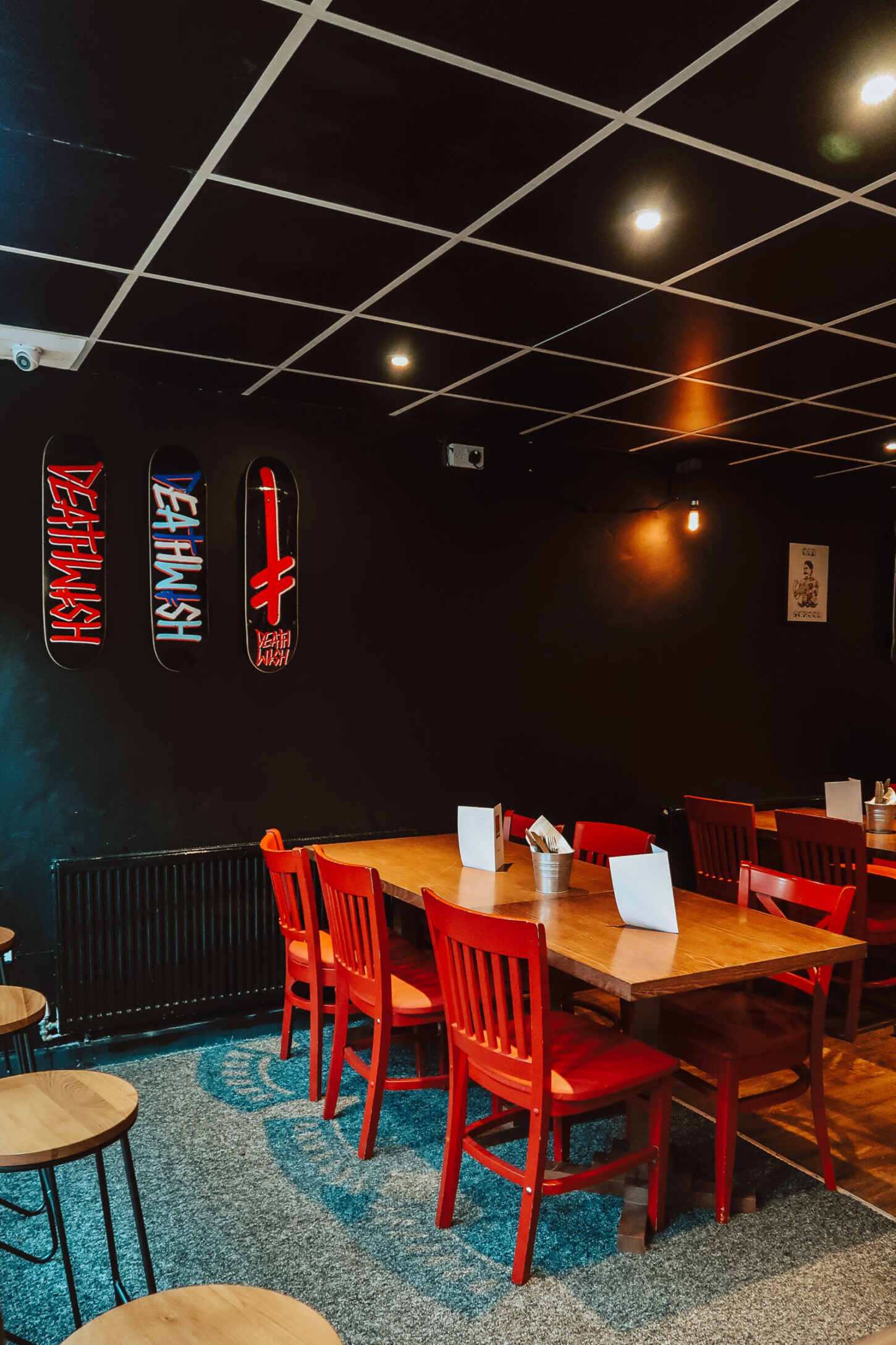 The venue has had a complete overhaul, with black walls and ceiling tiles, red wooden chairs and skateboards hanging from the walls. It feels unlike any other venue in the city centre, and I can imagine it would lend itself well to live DJ sets with craft beer and small plates on weekends, too.