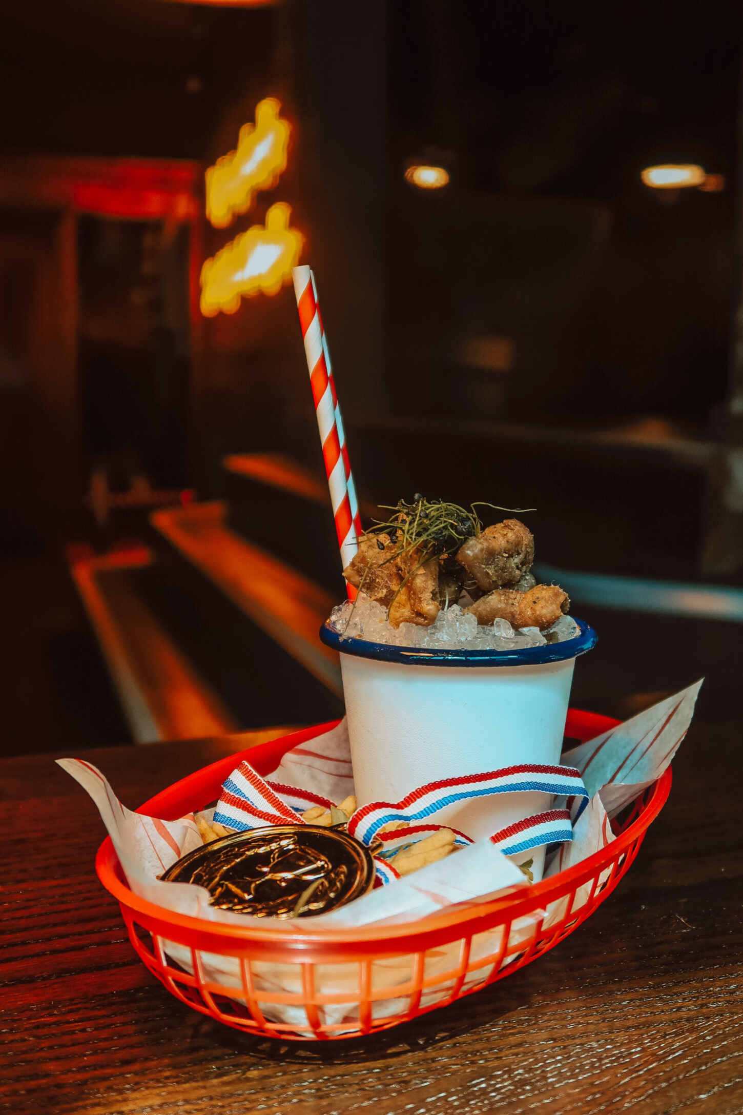 For the first round, we ordered a Soft-Brexfast, Hooligan Mother, Winner Winner and a carnival-themed drink I, for the life of me, can’t remember the name of. My Soft-Brexfast is a Wash House classic, made with Cocopop vodka, Benedictine and Mozart Dark Chocolate Liqueur – think extra boozy, chocolate Bailey’s. And the thing with The Wash House is that each of their cocktails comes served with a fun accompaniment, so this breakfast-themed cocktail came with a bowl of Coco Pops with a vanilla foam, meaning you can eat the cereal and slurp your drink through the straw, or pour the cocktail into the bowl and enjoy!