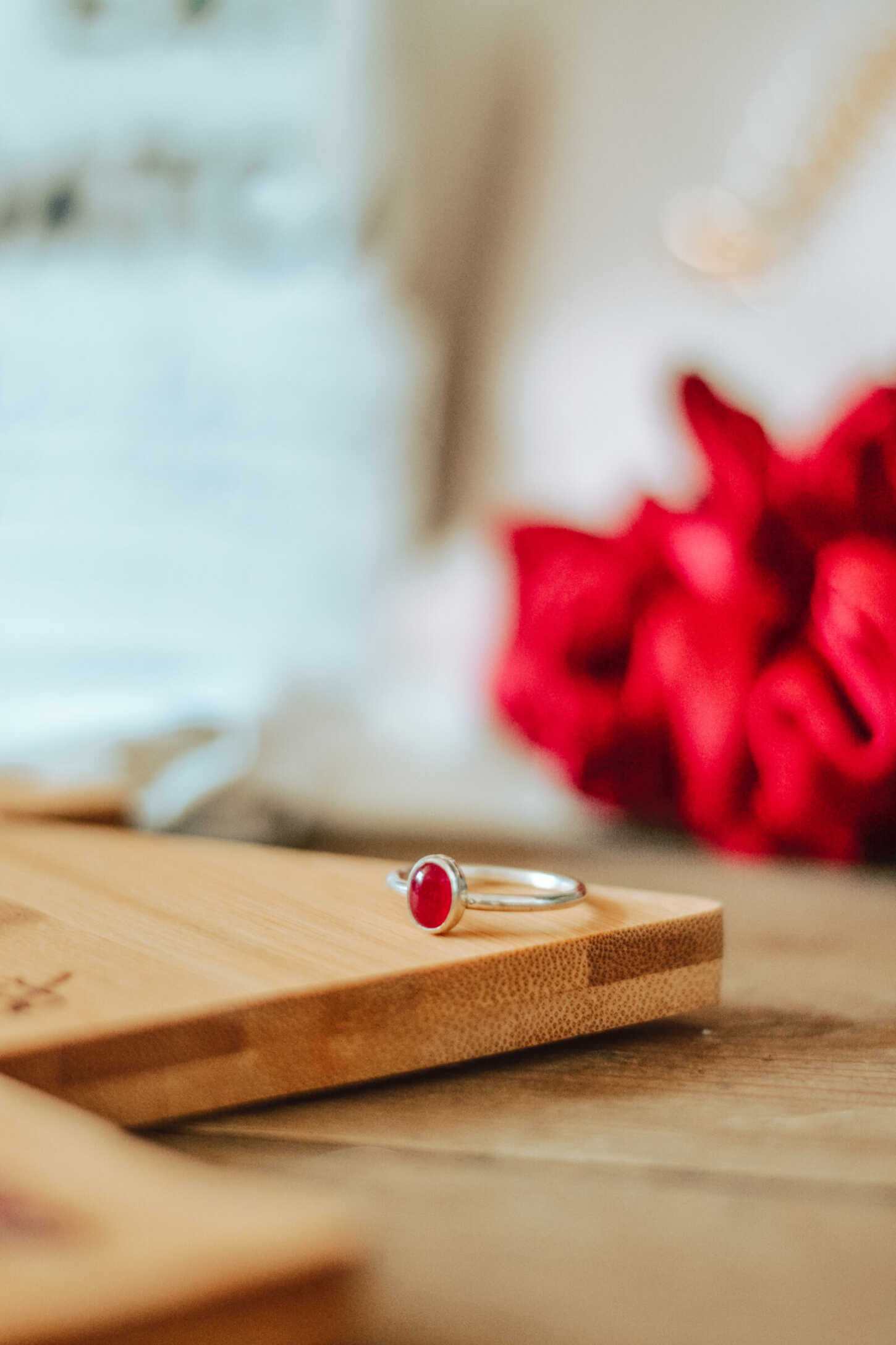 My rani jade ring is a breathtaking piece, and the stone appears to change colour in different light, from a bright magenta to a deep plummy red. The gemstone rings look beautiful on their own, or can be stacked with some of Pippa’s stacking rings, which cost between £22 and £26. I think the wishbone ring and bark textured stacking rings would make a beautiful trio. And when you order on The Gem Shed website, you can get a huge £18 discount when you order two stacking rings with rani jade ring – so £75 for all three!