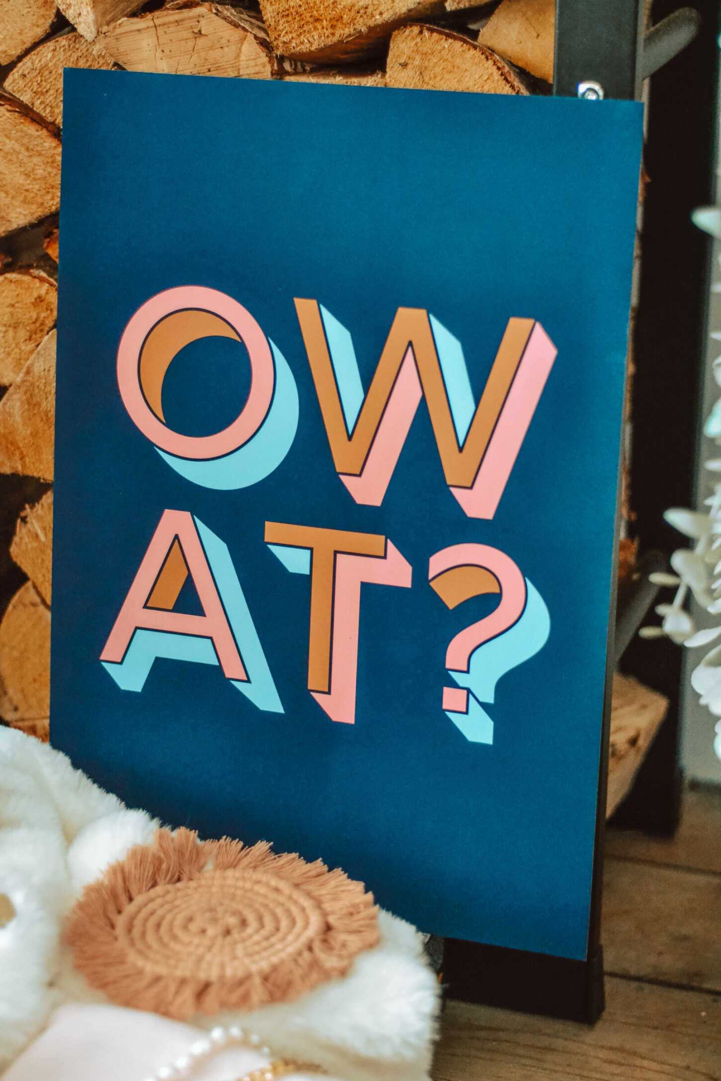 Then there’s the Ow At? print, in a colour popping navy, blue, gold and pink. It’s the ultimate finishing touch to your office, kitchen or bedroom, but I think it’s especially fitting for the hallway, to welcome in friends and family.