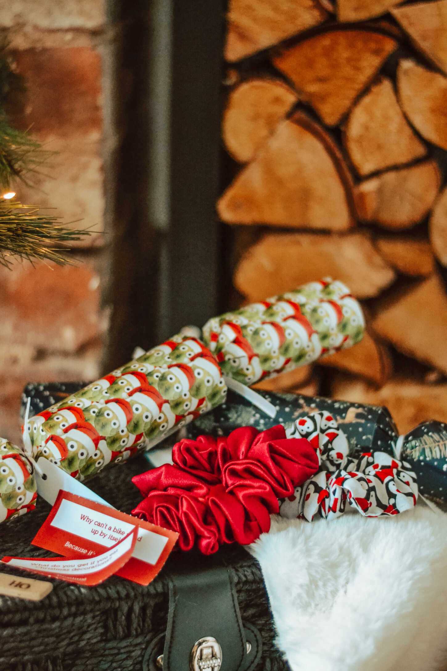 My crackers came in brussel sprout and navy reindeer designs, inside which was a gorgeous magenta silk scrunchie, and a festive penguin one, perfect for adding a bit of Christmas spirit to my outfits. The jokes are such a nice touch, and who can resist wearing a cracker paper crown?