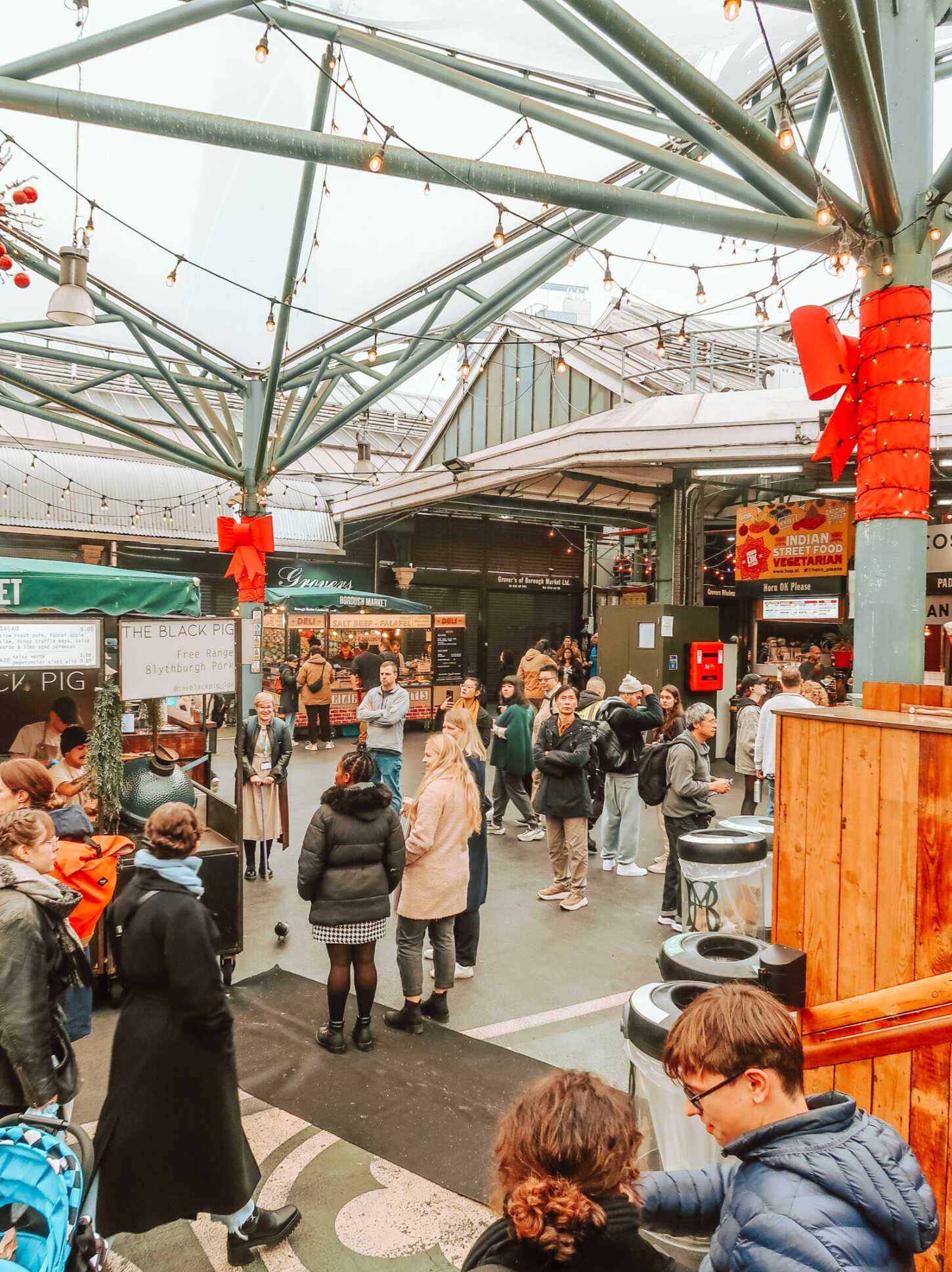 Instead, after our romantic proposal, we headed to Borough Market for some food. The historical Borough Market is now run by a charitable trust, and features dozens of traders selling everything from fresh produce, deli and groceries, to hot food and desserts to take away. The market is a beacon for sustainable food production, short supply chains and social connection, drawing visitors from far and wide – and the options of what to eat are seemingly endless.