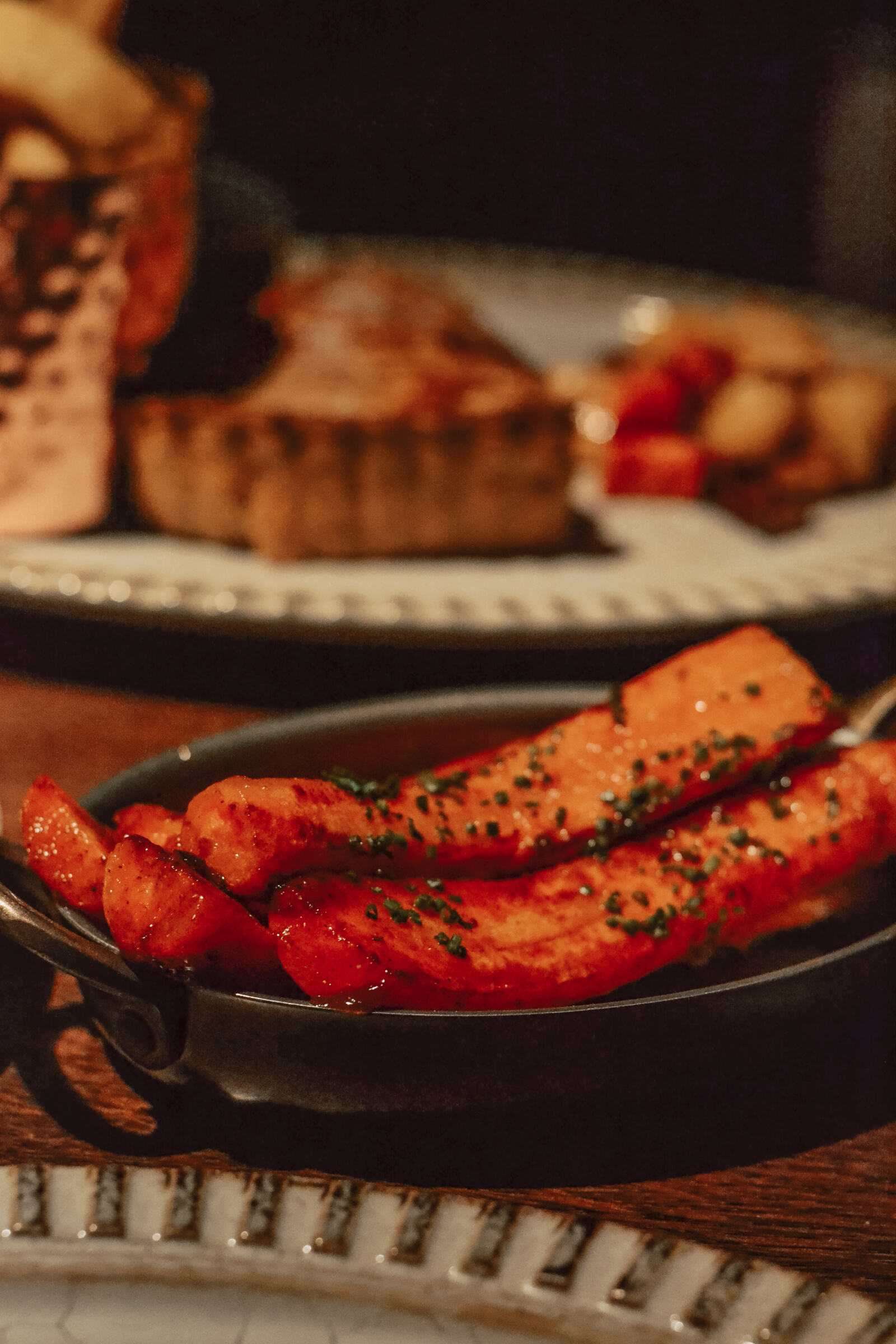 The cut of pork that arrived on my plate on the bed of brown butter mash was the size of both my clenched fists, served with a large confit carrot, pickled apples, puffed crackling and a rich, sweet cider sauce. A huge fan of a honey glazed carrot, I ordered an additional side portion for the table, which I went on to eat entirely myself.