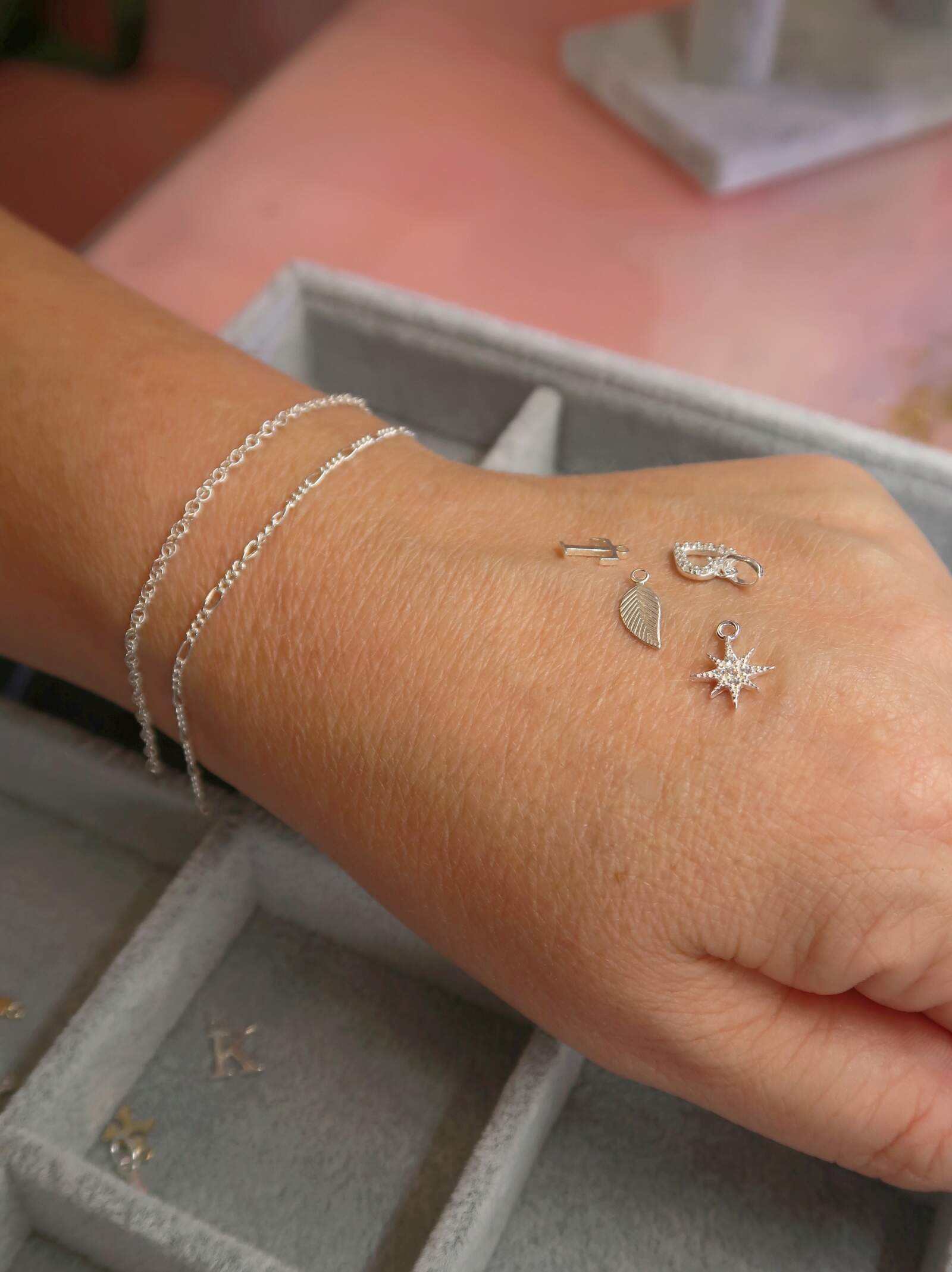 After deciding on your chain and charm combo, Jemma will help you find the perfect fit, which is typically the size of your wrist, plus a finger space. This not only allows the jewellery to hang beautifully, but is done so from a safety point of view, too. For example, if the bracelet was too tight and you had an injury, pregnancy or were sensitive to the heat and it caused swelling, the bracelet could pose an issue. Equally, if it’s too baggy it could catch on things or snag, making it more prone to breaking. Ultimately in these circumstances it’s preferable for the jewellery to break than cause an injury, since it can always be re-welded.