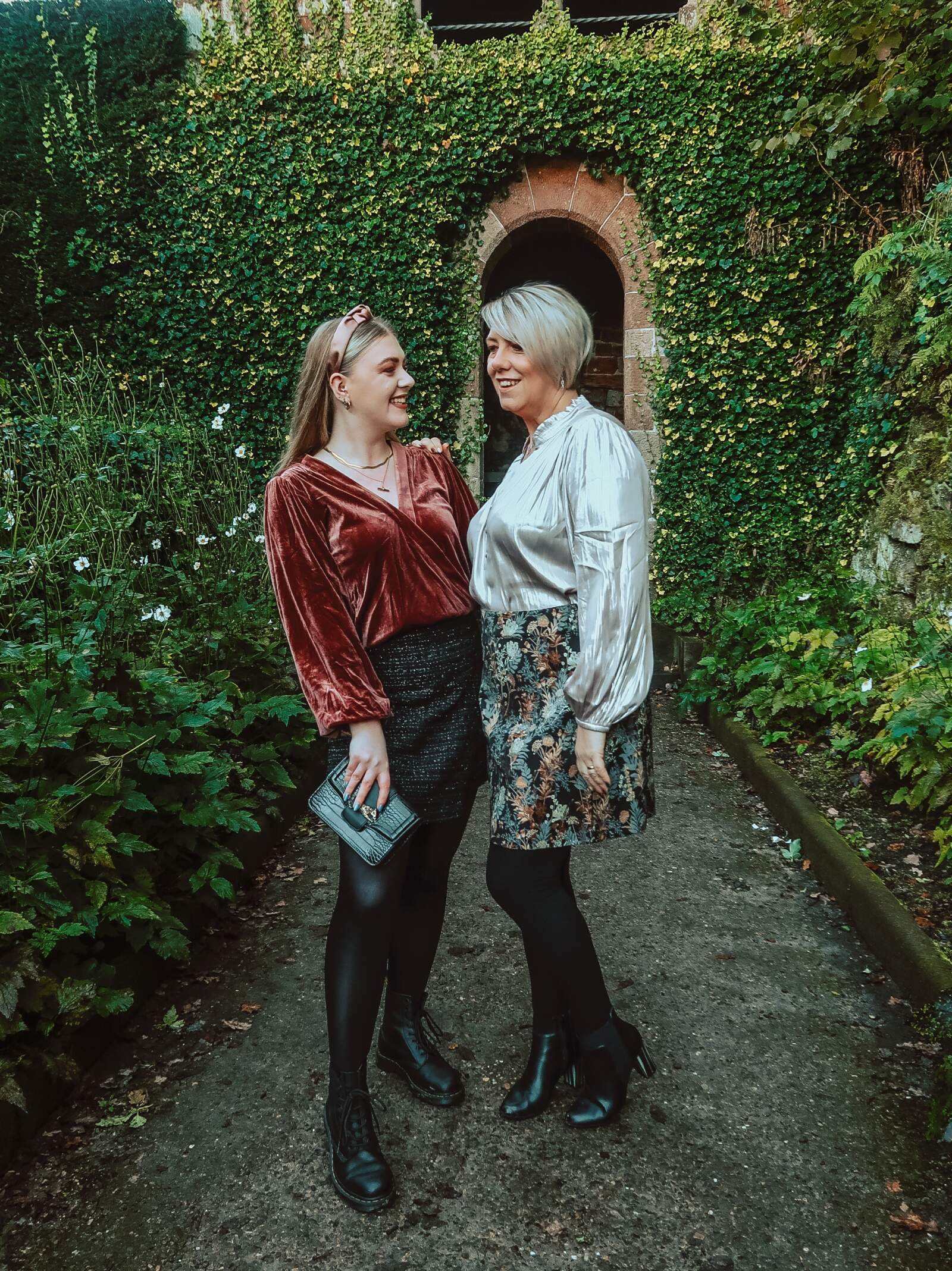 The whimsical floral design is gorgeous in rich autumn shades of navy and rust which allow it to go with a range of tops from the Copper & Black collection – including the Reese’s top I styled, which also comes in navy. The quality is beautiful and though it’s not lined, it’s a thick material that holds its structure, fastening with a concealed side zip. Mum opted for a size 16, but the fit of these is quite generous and so there’s plenty of room in it for mince pies and prosecco. As mentioned earlier though, it proves to be a versatile piece that can be worn with a rollneck for work, a sparkly top and ankle boots for the evening, or jumper and boots for a trip to the markets.