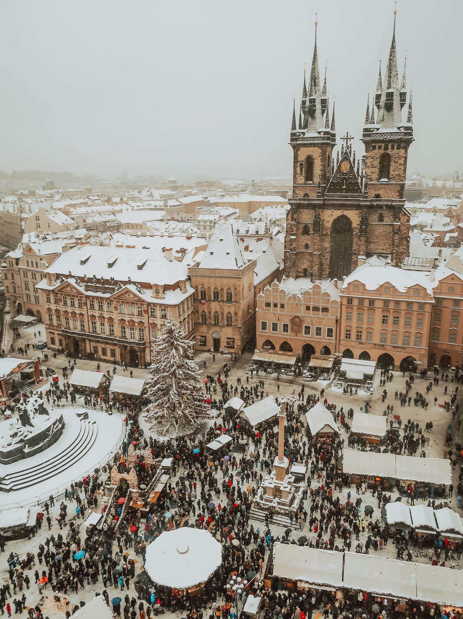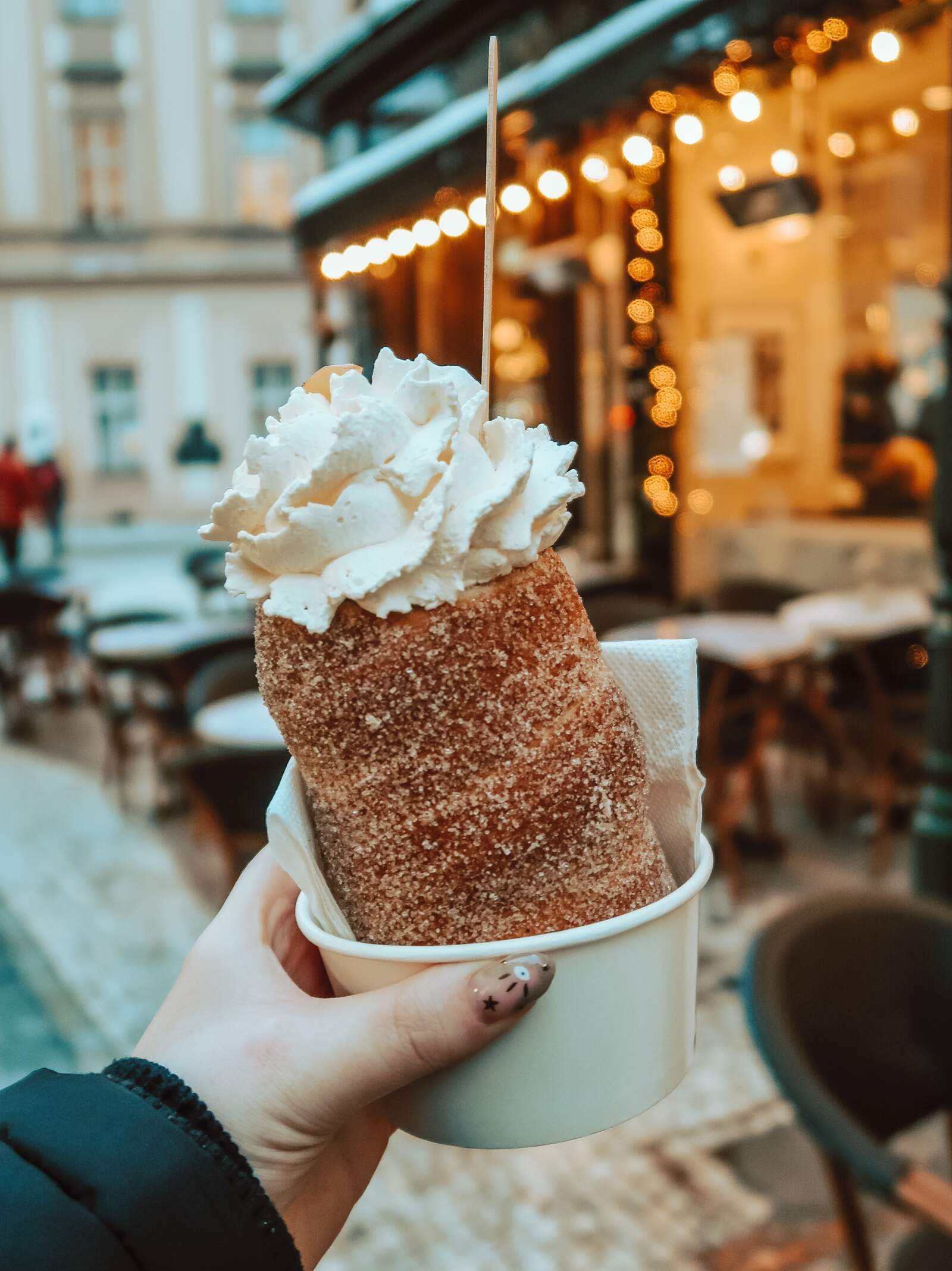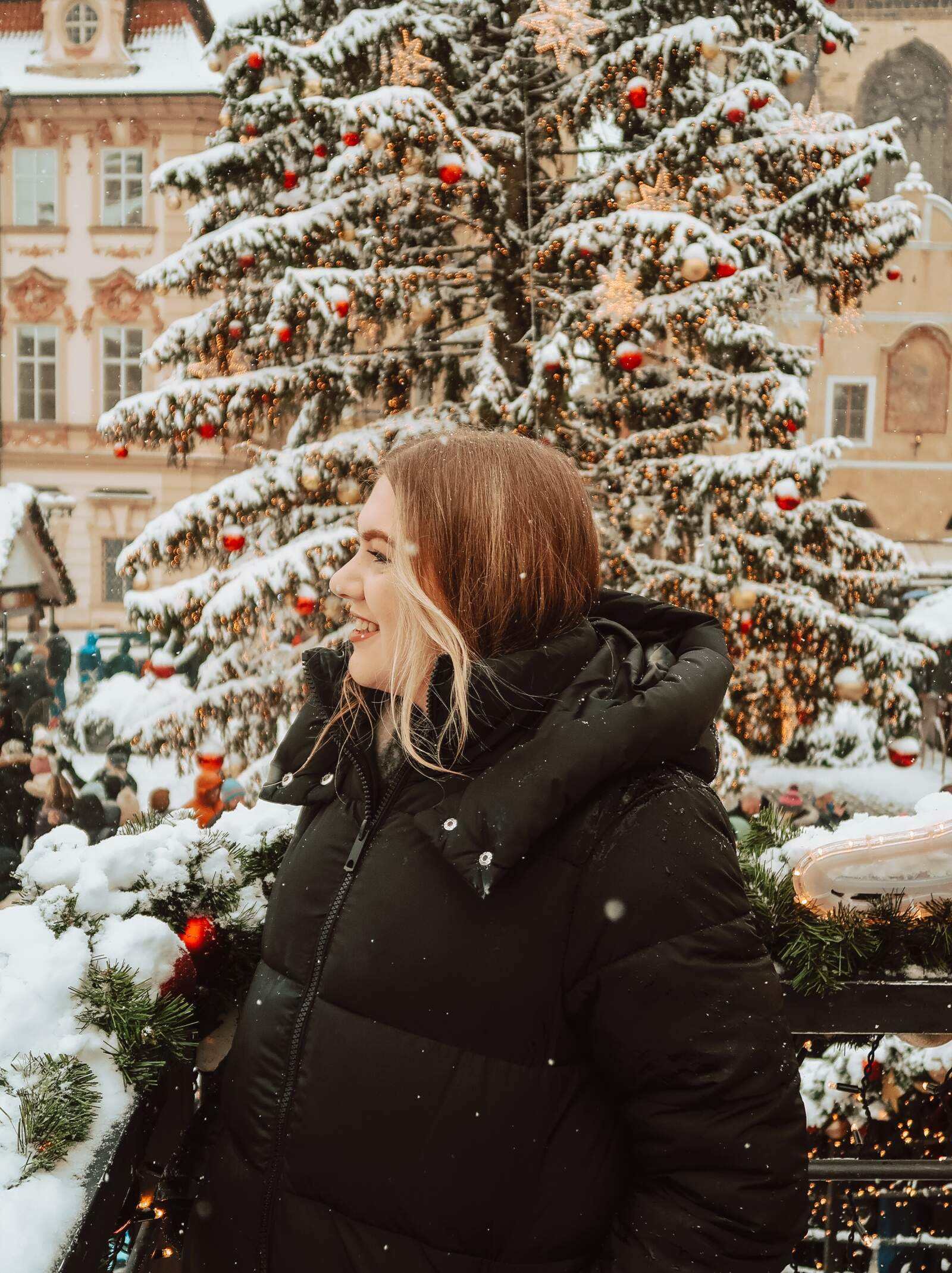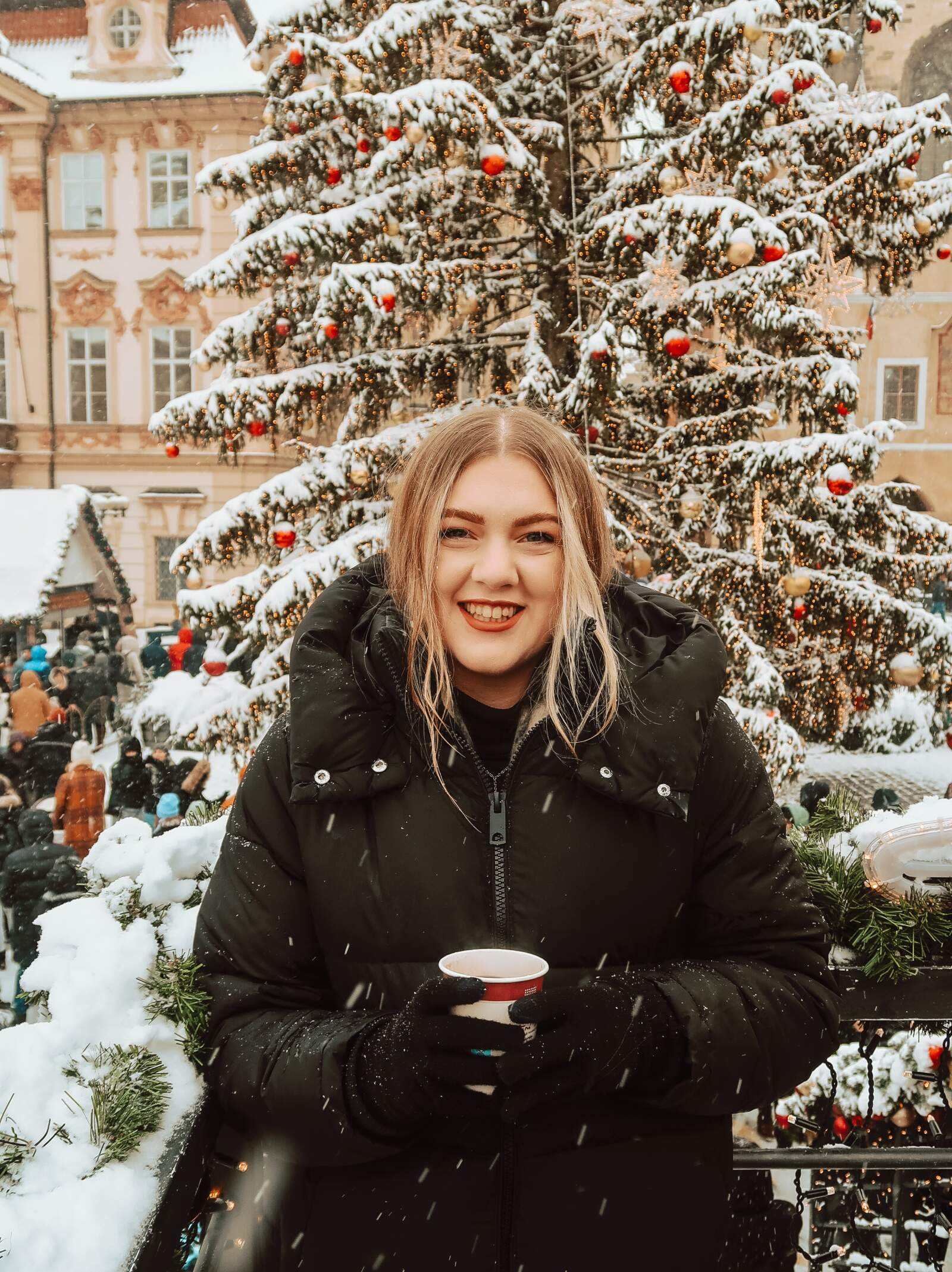 We took a stroll through the streets to the lively cobblestoned hub of Old Town Square where the Christmas Markets were already in full swing, with festive music playing over the speakers, the smell of freshly baked chimney cakes and mulled wine in the frosty air. The city stalls offered a plethora of unique gifts, local crafts, and delicious treats, from nutcrackers in every colour, to roasted chestnuts and festive decorations. In the centre of the square, there’s a platform where you can get a photo in front of the Christmas tree, and overlook the markets with your drink of choice.