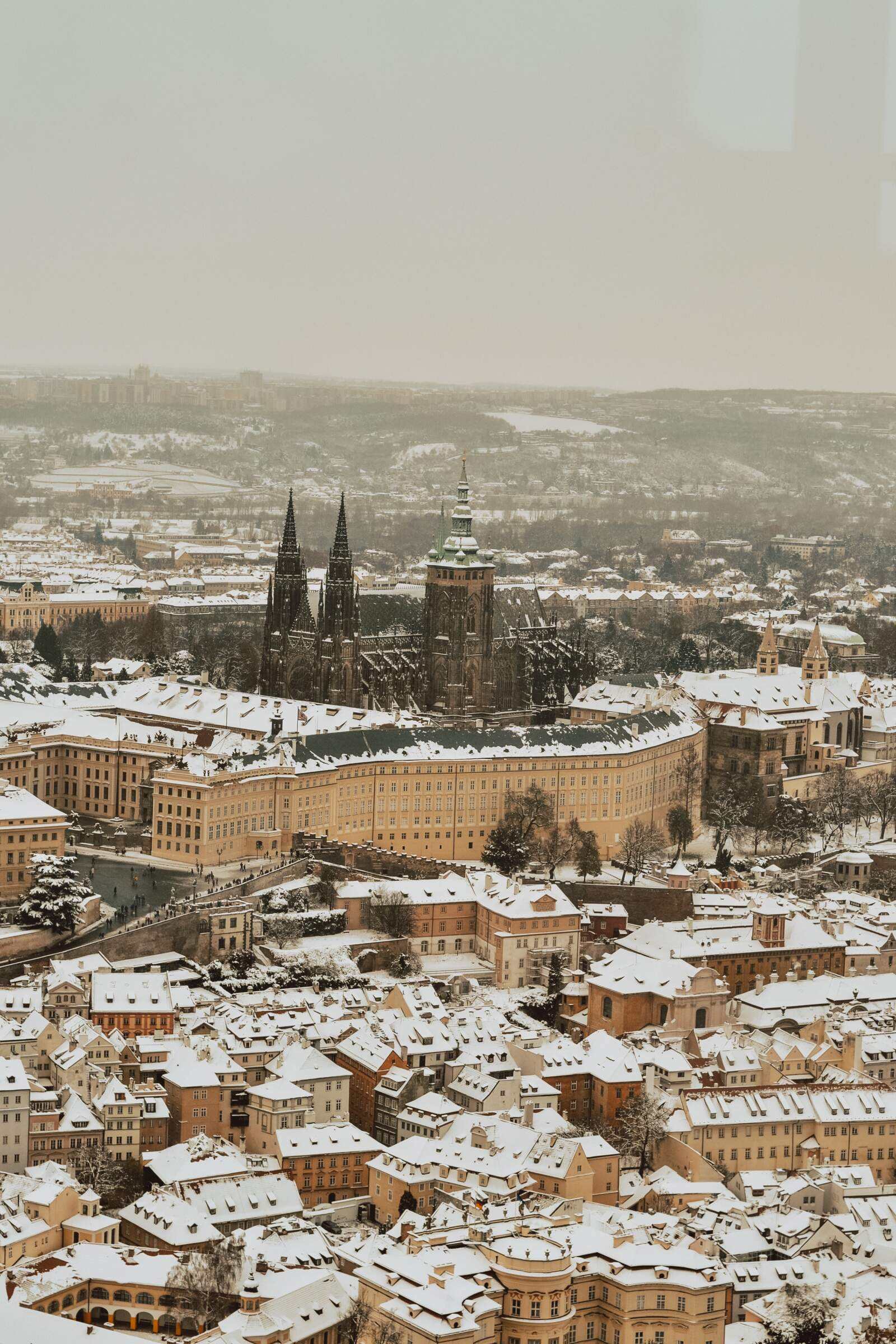 We weaved in and out of the culturally significant buildings including the Old Royal Palace. St. George‘s Basilica and Golden Lane, but admired the St. Vitus Cathedral only from the outside. As it was a Sunday, the Cathedral was only open on reduced hours and during said hours the queues were quite long. The building is an architectural masterpiece, and I’d love to go back to see the interior some time. The sprawling grounds in the snow felt as though walking through Hogwarts or something equally as enchanting, and before we left, we made sure to catch the Changing of the Guards at noon.