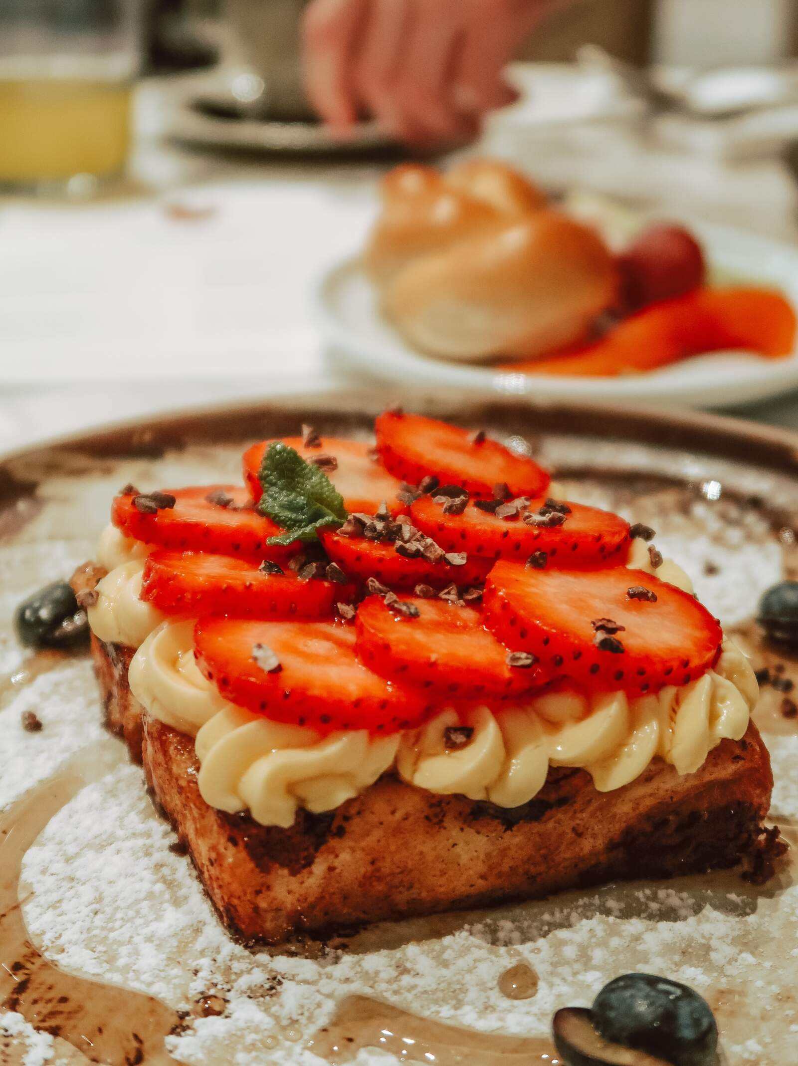 Being our first full day in the city, we got up early and fuelled up with a hotel breakfast. Andaz Prague’s morning menu is so dreamy, with a choice of dishes you can order alongside a traditional continental breakfast. While Jake ordered the ‘meat lover’s breakfast’ every morning, I enjoyed dishes like strawberries on French toast, Turkish eggs and decadent filled hazelnut and chocolate croissants.
