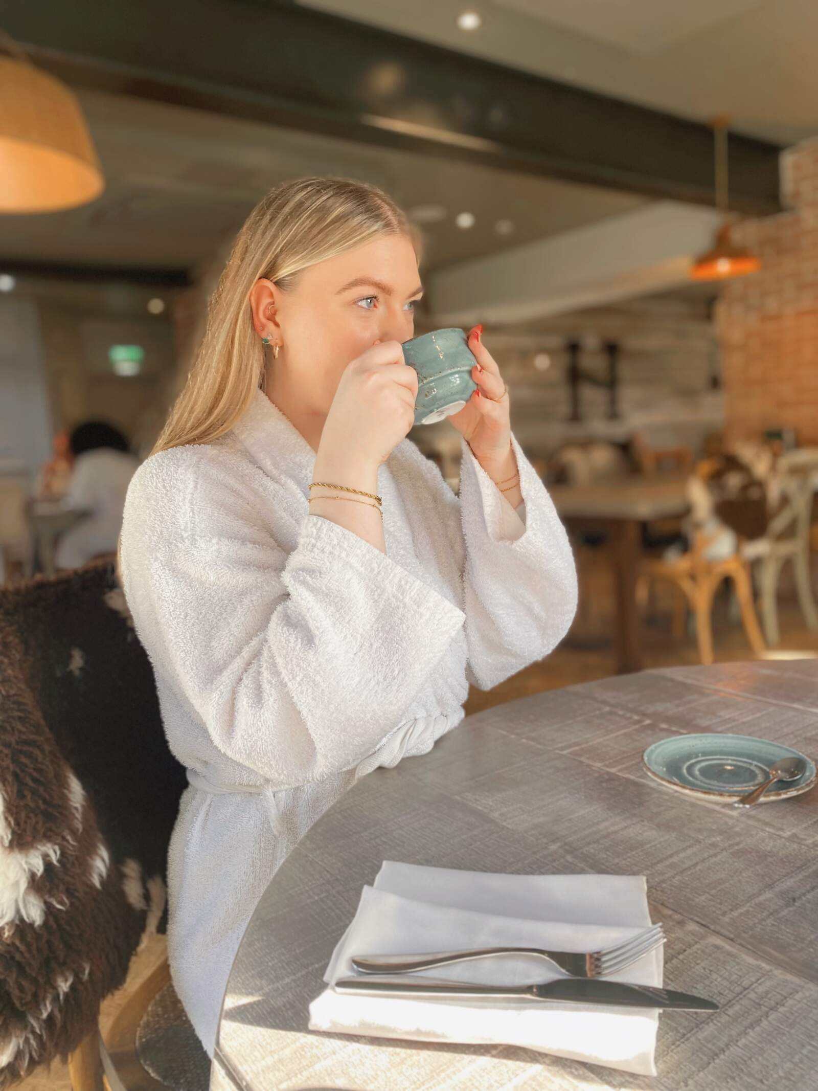 While we glammed up for our evening meal, the staff on reception said that most guests wear their robes to breakfast and lunch, so we headed up to Henry’s restaurant straight from the spa and enjoyed a pot of tea and hearty breakfast of local sausage, bacon, egg, hash brown, mushroom and toast – all of which was fantastic.