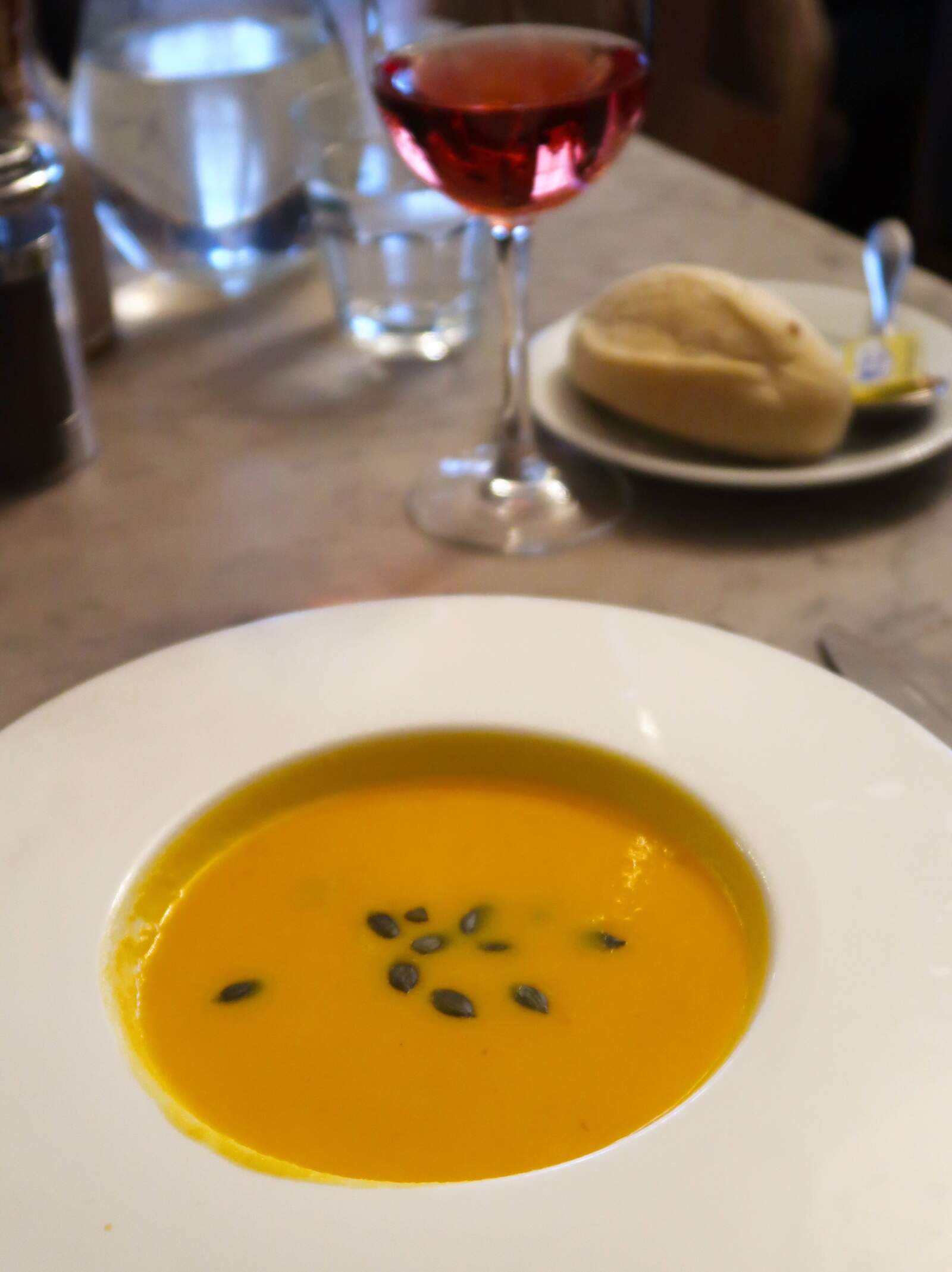 At 3pm, we headed upstairs in our robes to The Ballroom, where I devoured a butternut squash soup, with Jake plumbing for the pate – both very enjoyable. But it was the pork main that really stole the show – a decadent belly pork on a bed of crunchy stir fried veggies, beautifully seasoned and super tasty, complete with sides of sweet potato and truffle fries.