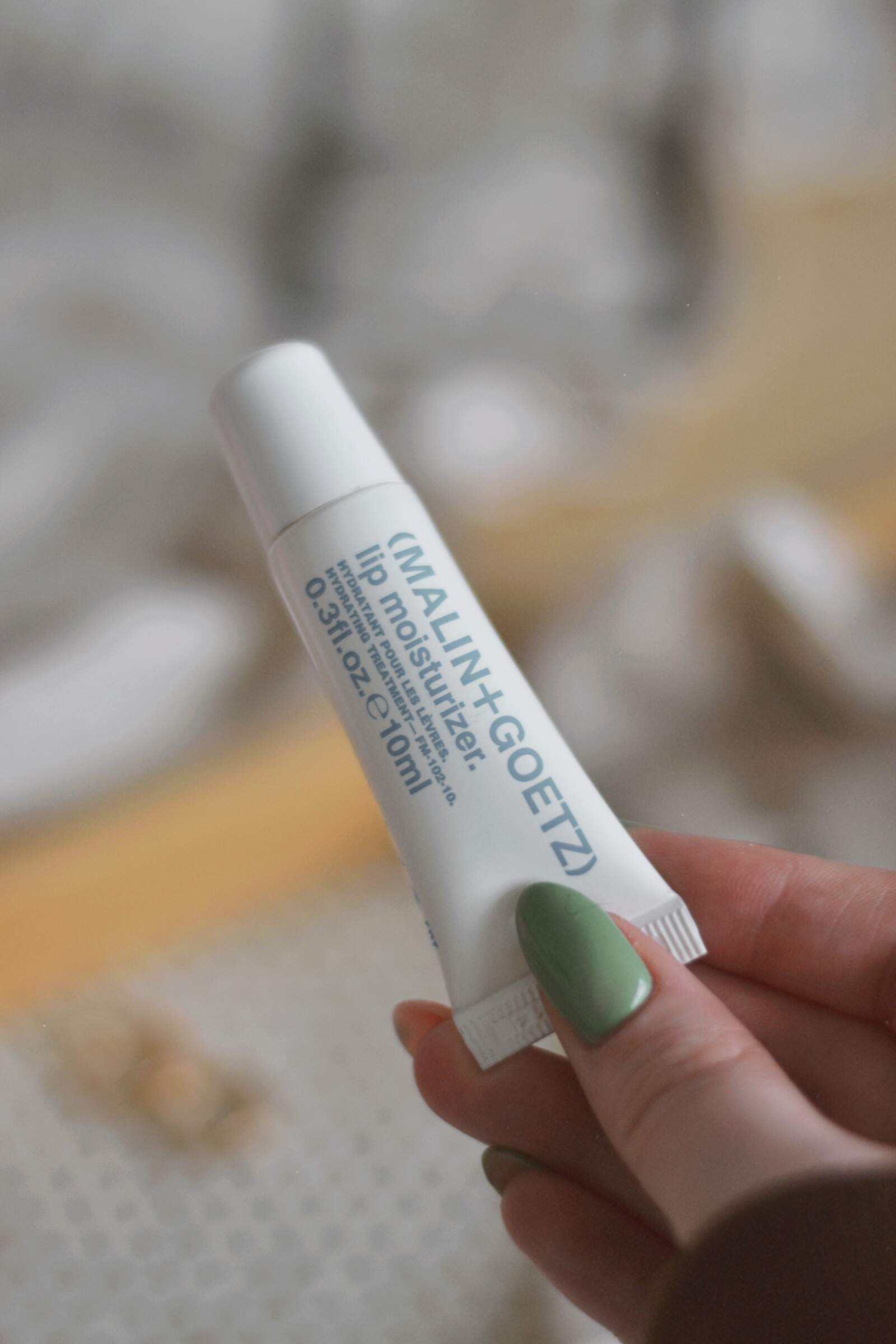 Final steps – lips and lashes – Malin+Goetz Lip Mousituriser and Glow For It lash serum