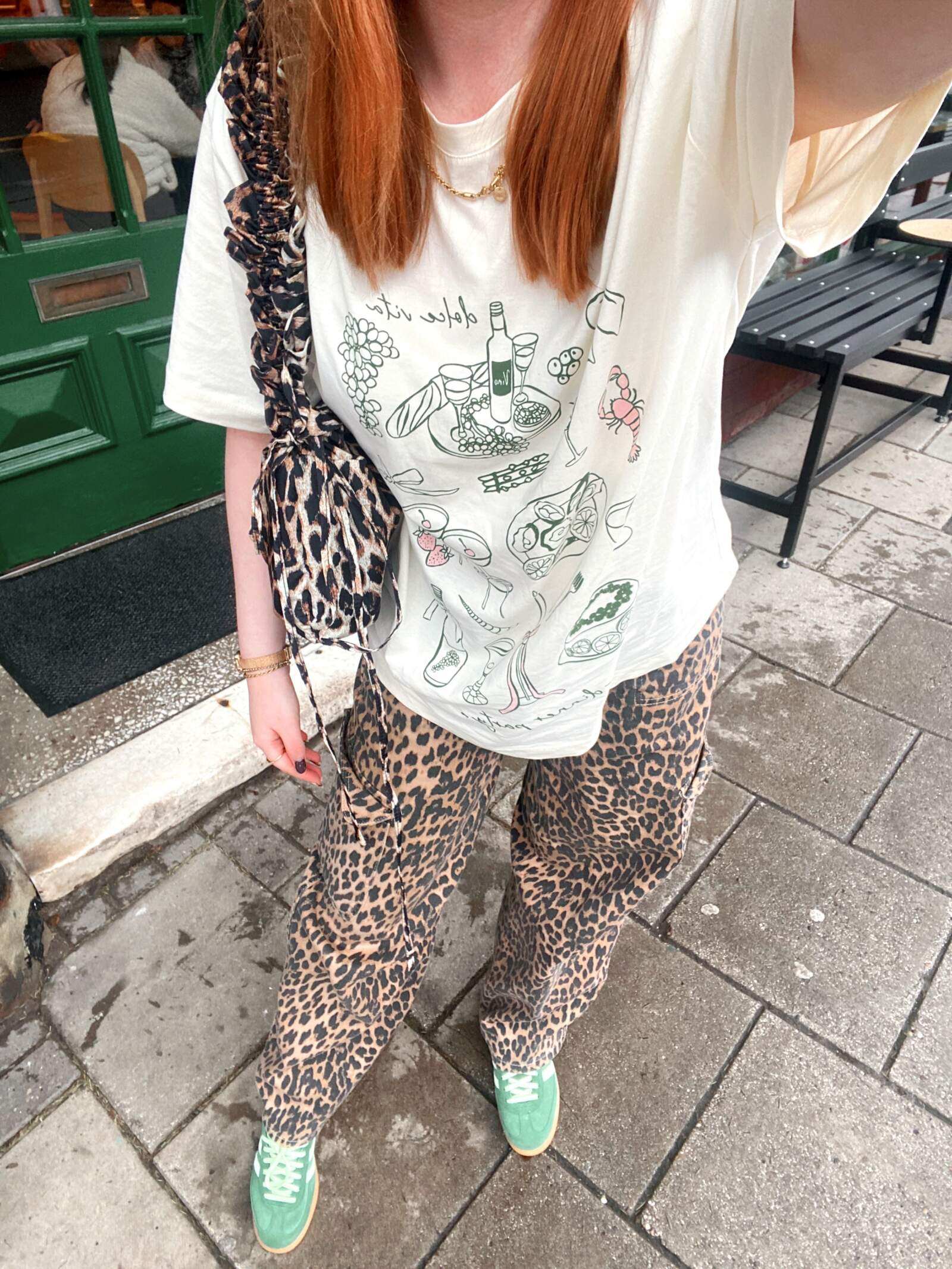 I styled mine with my trusty Damson Madder leopard print cargo jeans, which are rarely off my backside. I think because the new M&S designs are so Damson Madder adjacent, it just works so well and feels really cohesive. The bag – also Damson Madder – pulls the look together without feeling too matchy-matchy. I love that you can adjust the strap on this, so I was able to shorten the length to create more of a gap between the bag and jeans.