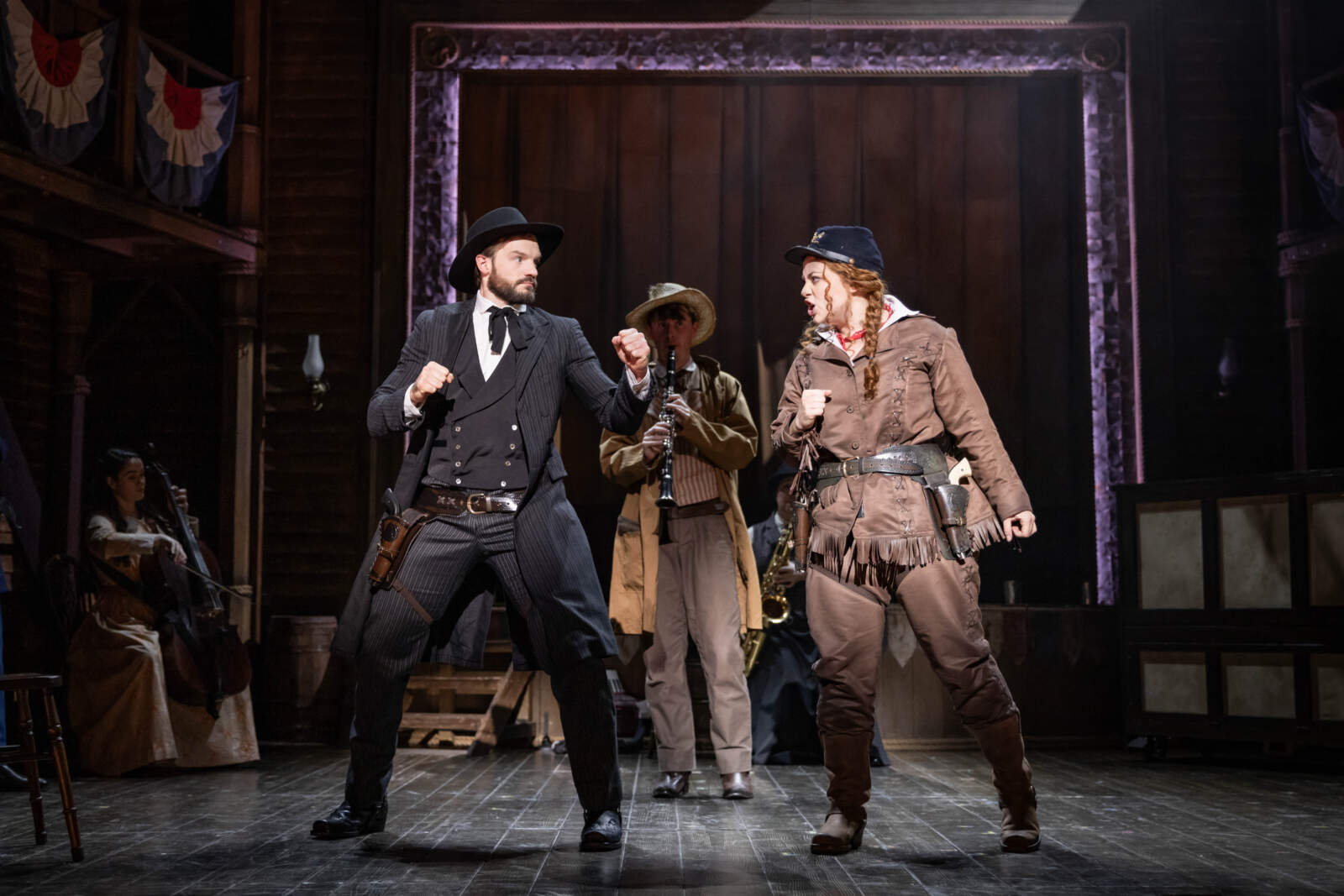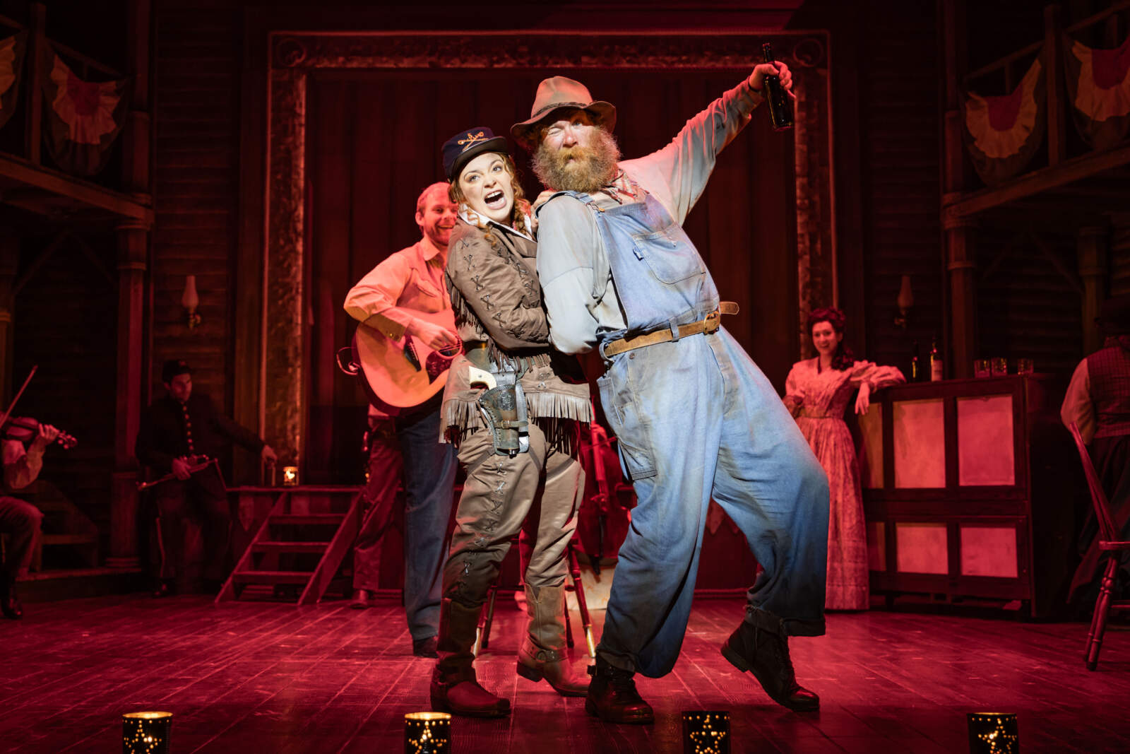 The musical numbers are well delivered with the ensemble performing live on stage with their instruments. I must admit I wasn’t familiar with the score having never seen the show before, but some of the tracks are incredibly catchy, from The Deadwood Stage (whip-crack-away) to Just Blew In From The Windy City and Careless With The Truth.