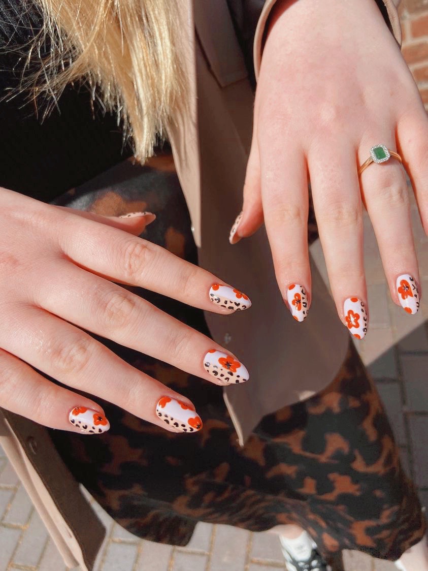 6. A little half and half moment. These floral and leopard nails I wore for my 2023 summer holiday and bagged so many compliments on them. The beige of the animal print with the lilac and orange contrast is just *chefs kiss*. I’ll definitely be recreating these again at some point soon.