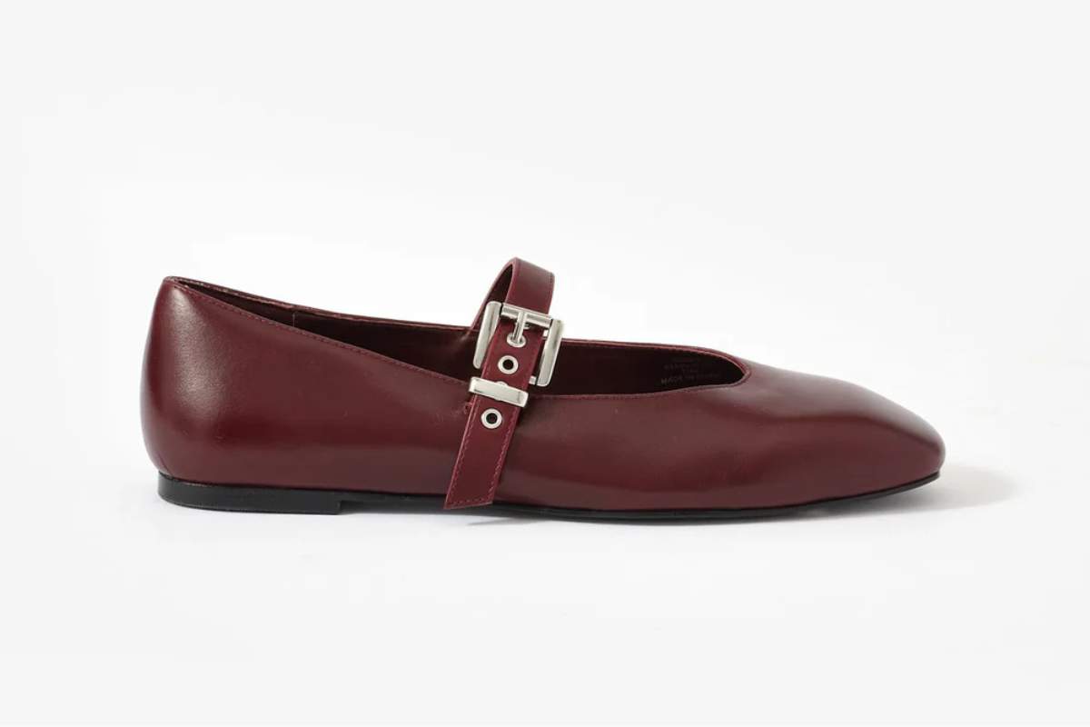Mint Velvet Bea Burgundy Leather Ballet Flats – £110