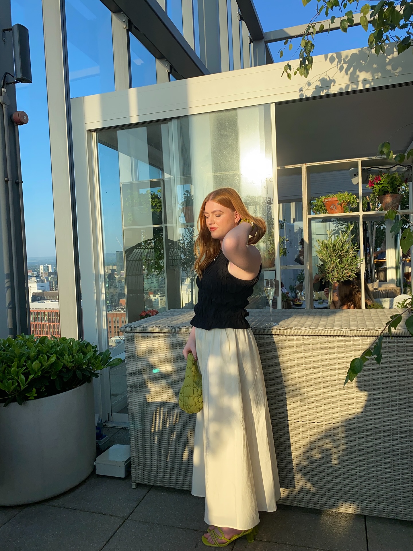 In the last 12 months, I’ve worn black on just three occasions. The first was for an influencer event where I wore a black shirred top with an ivory cotton skirt, lime green heels and a matching bag. It was the first time I’d worn black for about six months. I loved the contrast between the cream and black, with the lime making the outfit pop – perfect for rooftop drinks at sunset. I got so many compliments that night, not because I was in black, but because the whole outfit felt deliberate.