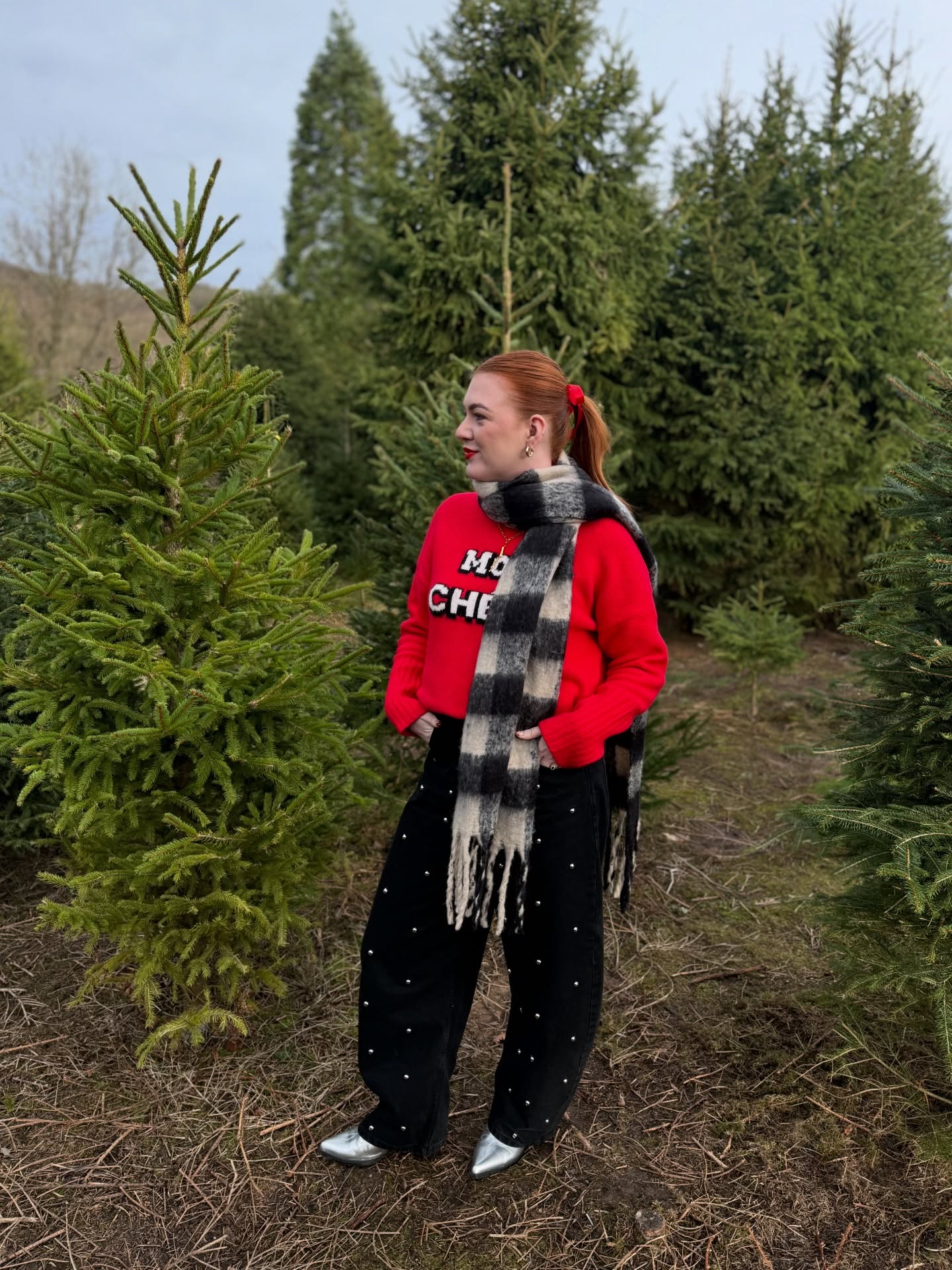 Then, at Christmas, I paired a festive red knit with some statement black studded barrel jeans to visit the Christmas tree farm. The black gave the red structure and edge and made the outfit feel graphic and seasonal, rather than thrown on for ease. This look actually broke two of my personal fashion rules, as I don’t usually wear silver, either.