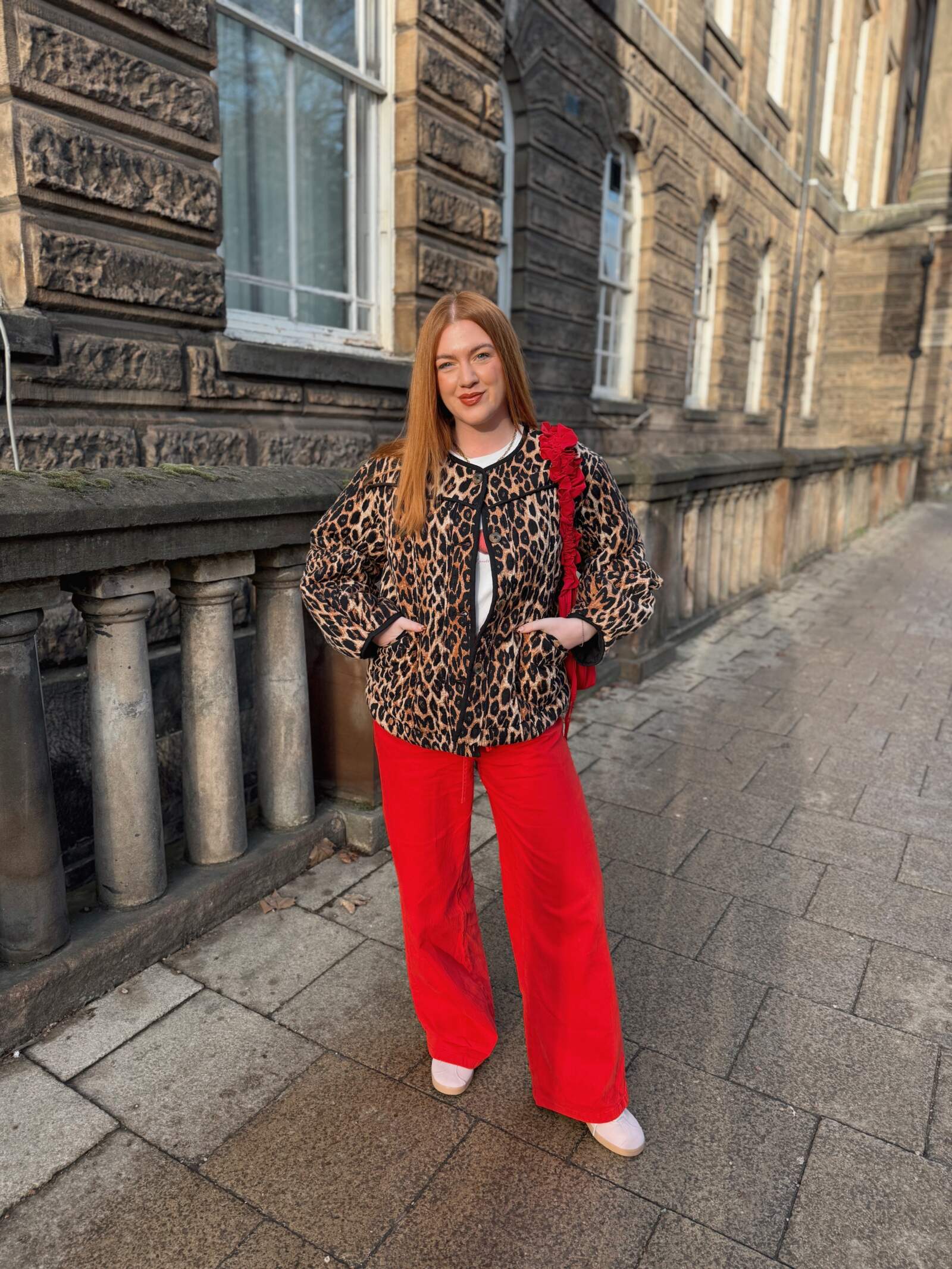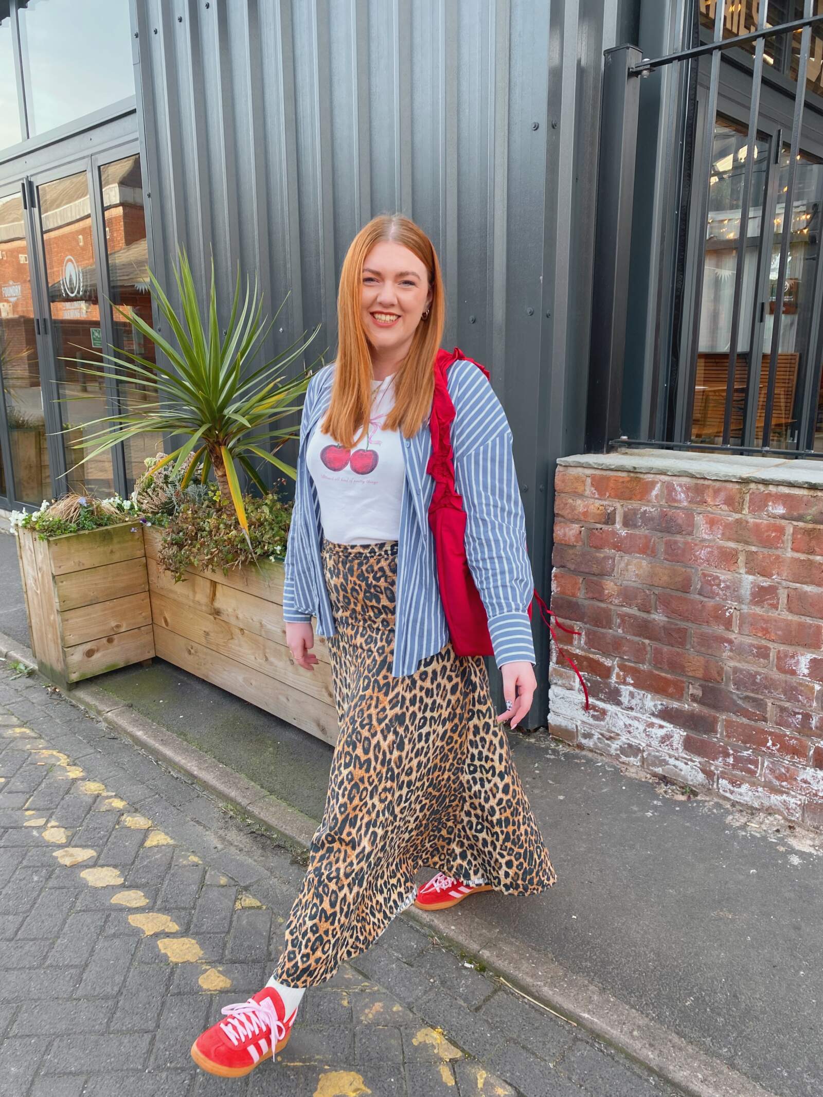 One outfit I’ll definitely be recreating this year is a leopard-and-stripe combination, finished with a pop of red. It sounds like a lot, but when you keep the base pieces classic, like this crisp blue poplin shirt from River Island, it works surprisingly well. The addition of cherry-toned accessories ties everything together and adds a trend-led twist without being over the top.