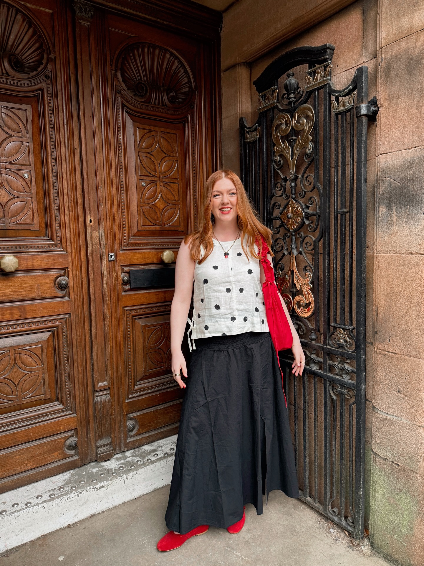 Personally, I’ve been leaning towards more traditional black polka dots on an ivory background. It’s chic, versatile and incredibly easy to wear. My current go-to is a linen blouse from FatFace, which is ideal for warmer days thanks to its breathable fabric and flattering details, like soft tie sides and a subtly shirred back.